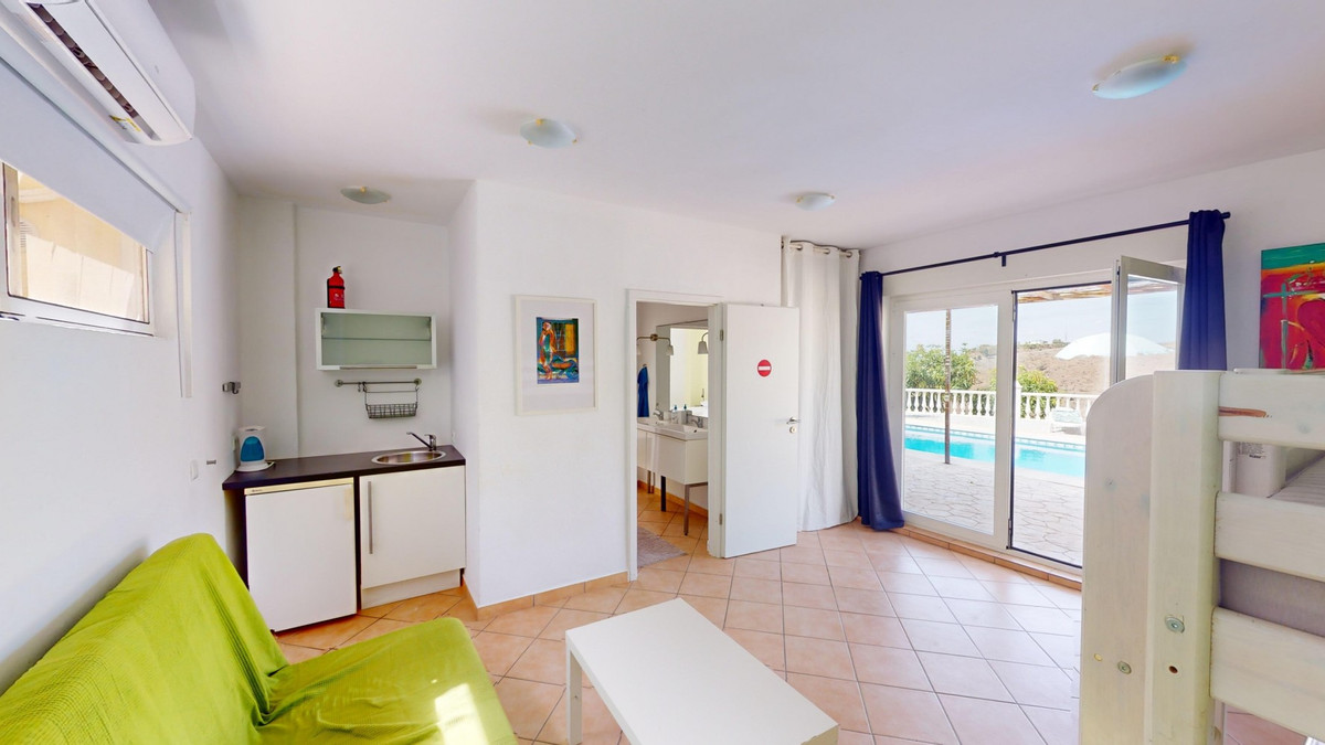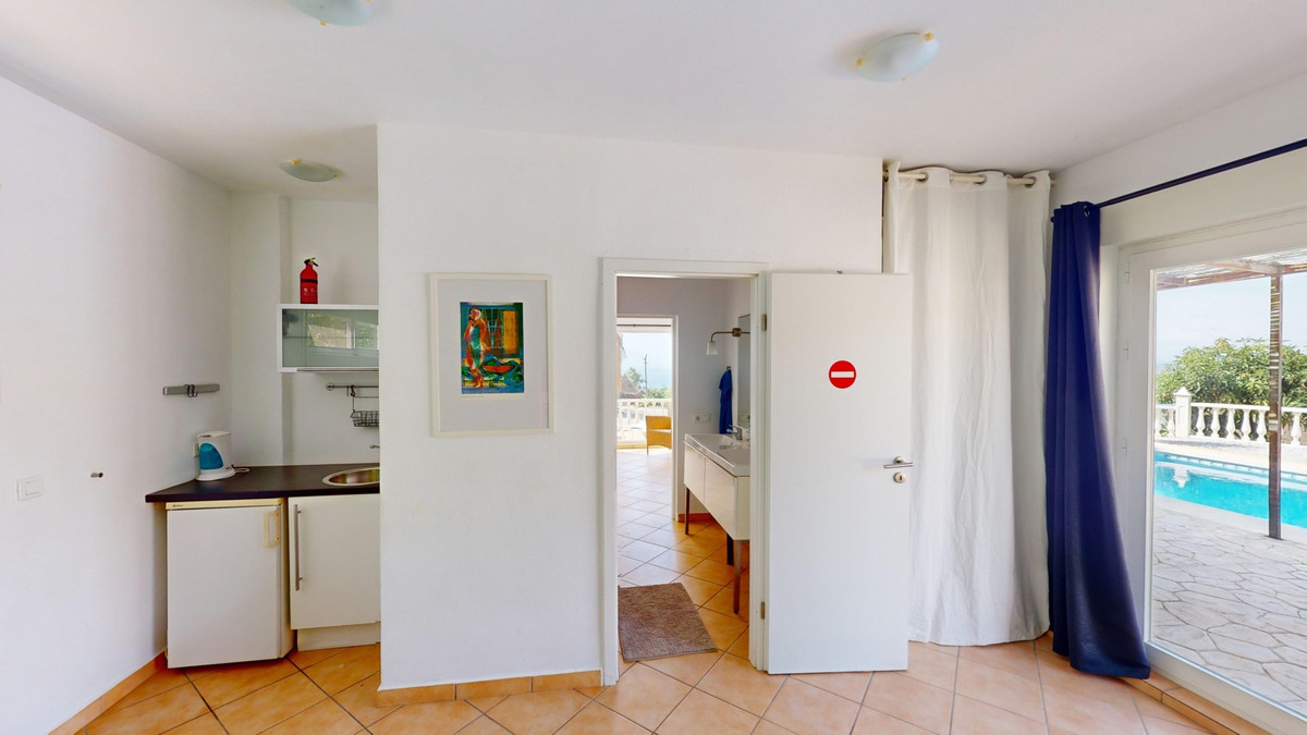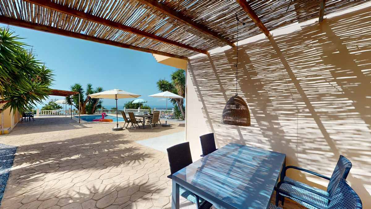 Découvrez l'incarnation même de la vie méditerranéenne avec cette finca exclusive à Algarrobo, située sur la magnifique Costa del Sol. Nichée dans une intimité absolue, cette propriété unique offre une vue panoramique à couper le souffle sur la Méditerranée scintillante et la campagne andalouse environnante. Avec une surface habitable totale de près de 190 m² et un terrain de 2 445 m², cette finca promet luxe et tranquillité. La propriété comprend cinq chambres spacieuses et trois salles de bains modernes, idéales pour recevoir famille et amis. Le cœur de la maison est un élégant salon avec une cheminée chaleureuse, donnant sur une cuisine américaine contemporaine équipée d'appareils haut de gamme. À l'extérieur, vous trouverez une piscine accueillante située entre la maison principale et les dépendances, offrant un espace parfait pour se détendre ou recevoir tout en profitant de la vue imprenable. Pour les amoureux de la nature, le vaste terrain offre l'opportunité idéale de cultiver votre propre paradis tropical, qu'il s'agisse d'une manguiererie, d'une plantation d'avocatiers ou d'orangers, comme vous en avez pu voir à la télévision. Cette finca offre un parfait mélange de luxe, d'intimité et de charme andalou, à quelques minutes seulement des plages de la Costa del Sol et de toutes les commodités. Bien plus qu'une simple propriété, c'est un art de vivre. Imaginez-vous vous réveiller chaque matin au son des vagues et sous la douce chaleur du soleil espagnol. Explorez la galerie photos ou effectuez une visite virtuelle 3D pour apprécier la beauté et la sérénité de cette demeure unique. Si vous rêvez d'une vie ensoleillée, cette finca à Algarrobo vous attend. Contactez-nous dès aujourd'hui pour organiser une visite privée et faire de ce coin de paradis andalou votre chez-vous.