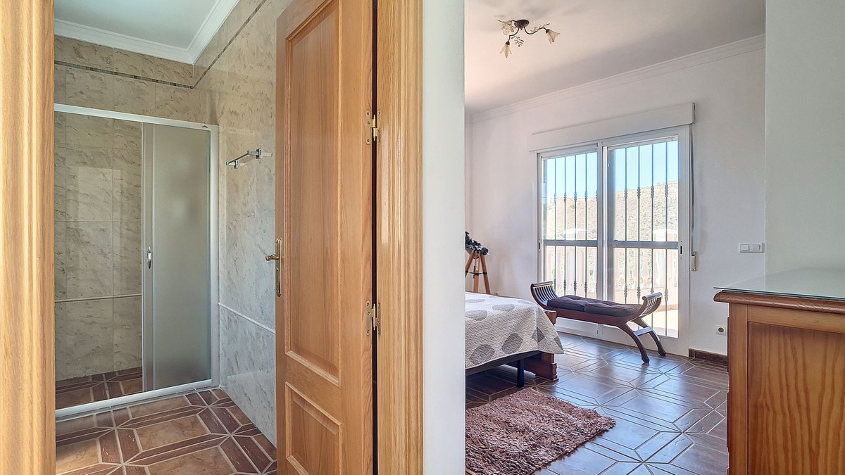 Située dans l'un des meilleurs emplacements de l'Axarquía, cette villa vous propose une maison principale sur deux niveaux, totalisant quatre chambres et trois salles de bains privatives. Au rez-de-chaussée, vous trouverez un vaste séjour climatisé avec cheminée, une cuisine entièrement équipée (four, micro-ondes, lave-vaisselle et plaque à induction), un cellier faisant office de cuisine supplémentaire et un autre cellier servant de buanderie. Attenante au séjour, une chambre spacieuse avec placards intégrés et salle de bains privative (lavabo, WC, bidet et douche) complète l'espace. Une chambre supplémentaire pouvant servir de bureau et des toilettes séparées pour les invités sont également disponibles.