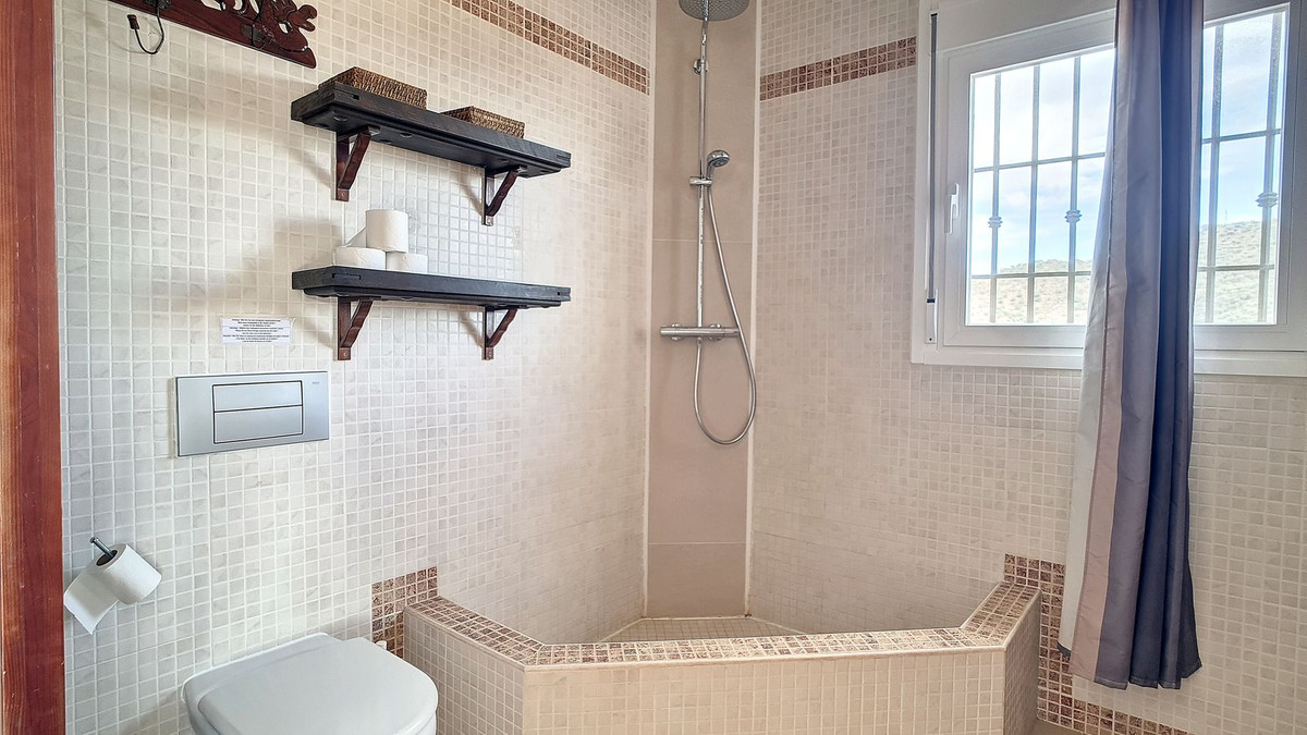 La villa comprend un séjour (coin salon et salle à manger) avec cuisine ouverte. Au rez-de-chaussée, elle offre deux chambres spacieuses, chacune avec sa propre salle de bains, ainsi qu'un cellier équipé d'un lave-linge et d'un espace de rangement pour le linge de maison. Un bel escalier dans le séjour mène au premier étage qui abrite une suite parentale spacieuse avec coin salon et espace détente, salle de bains privative avec baignoire/douche et dressing. La terrasse offre une vue imprenable sur les montagnes environnantes et la mer.