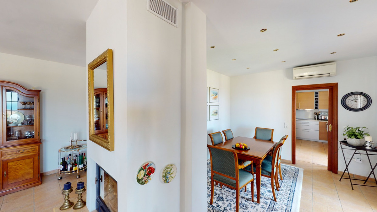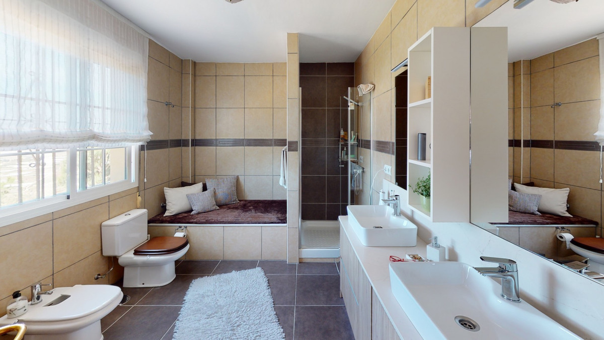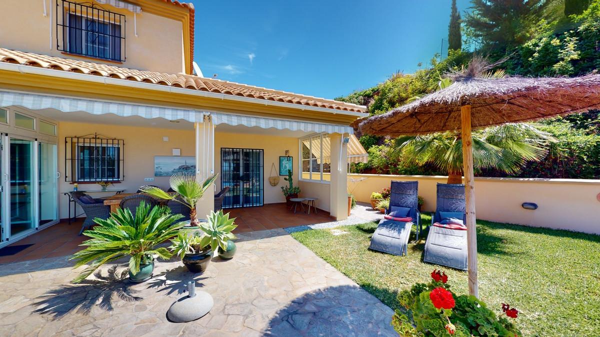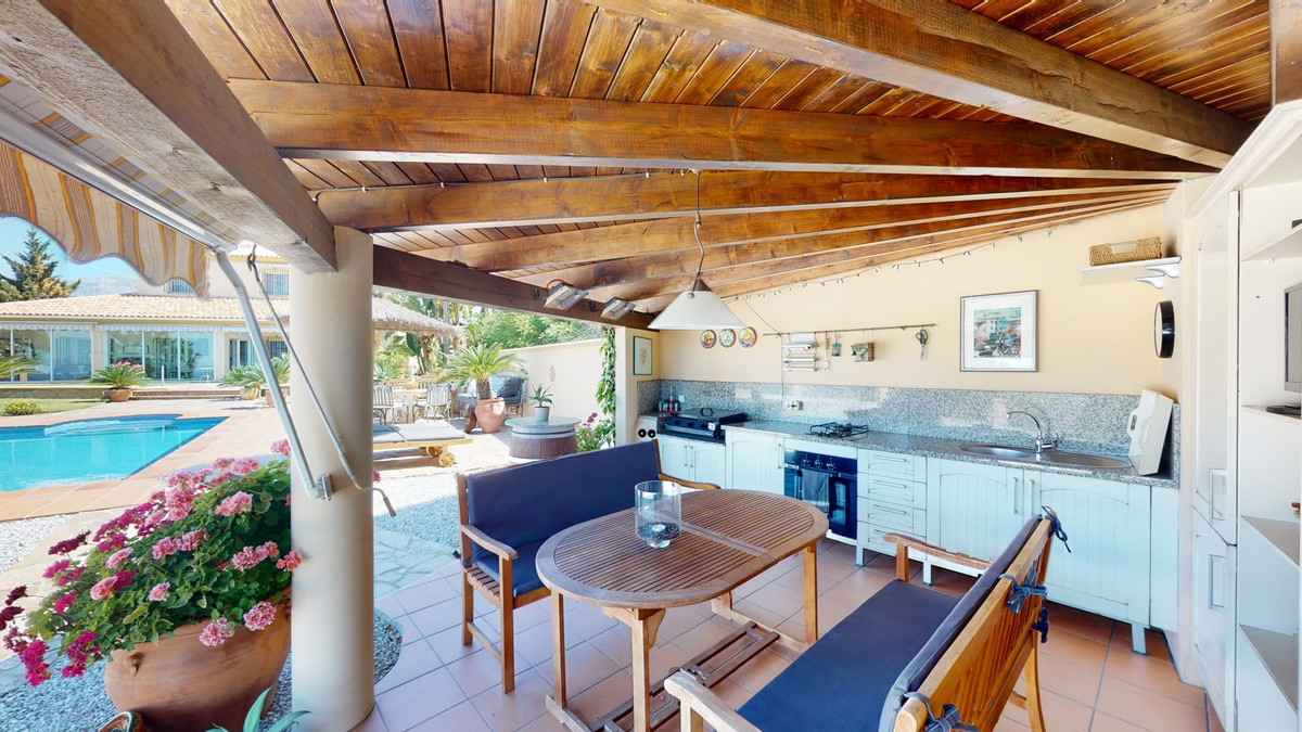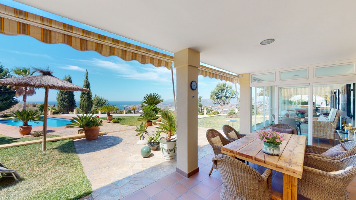 Une vue imprenable, une orientation sud-ouest idéale : la promesse d'un bonheur absolu. Cette villa d'exception, construite avec des matériaux de très haute qualité, offre un cadre idyllique avec un magnifique jardin comprenant spa, sauna et piscine, ainsi qu'une luxueuse cuisine d'été avec coin repas intégré. Située entre Algarrobo et Sayalonga, cette villa unique vous propose tout cela et bien plus encore. Son emplacement privilégié garantit une intimité totale et vous offre une vue romantique sur le coucher du soleil, se reflétant tantôt sur la Méditerranée, tantôt, selon la saison, sur le fabuleux paysage montagneux de Malaga. Un chemin privé asphalté, bordé de pins, mène à l'imposante entrée de la propriété, où un îlot de palmiers se dresse au milieu d'un rondin. Plusieurs places de parking, un garage et un grand abri voiture complètent le rez-de-chaussée. Au premier étage se trouvent le salon avec une cheminée séparée, des toilettes invités, une buanderie, une cuisine moderne donnant sur une véranda spacieuse et parfaitement équipée, ainsi qu'une très belle chambre avec salle de bains privative. À l'étage de la villa se trouve la suite parentale avec une spacieuse salle de bains privative et un dressing. La propriété est équipée du chauffage central, de la climatisation et d'une cheminée. Le terrain est agrémenté d'une variété d'arbres fruitiers, de palmiers, de plantes tropicales et de pins. La plage et la mer, ainsi que le golf et le port de plaisance de Caleta, sont à 15 minutes, et l'aéroport de Malaga à seulement 40 minutes. Nous serions ravis de vous présenter prochainement cette propriété de rêve, en personne ou par visite virtuelle. Car ce monde est unique, à l'image de notre Axarquía. En Andalousie. Sur la Costa del Sol. Ici, sous le soleil…
