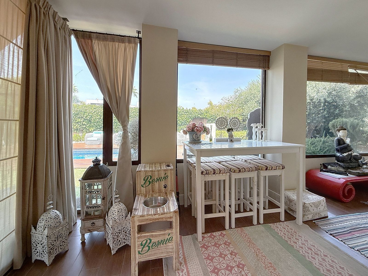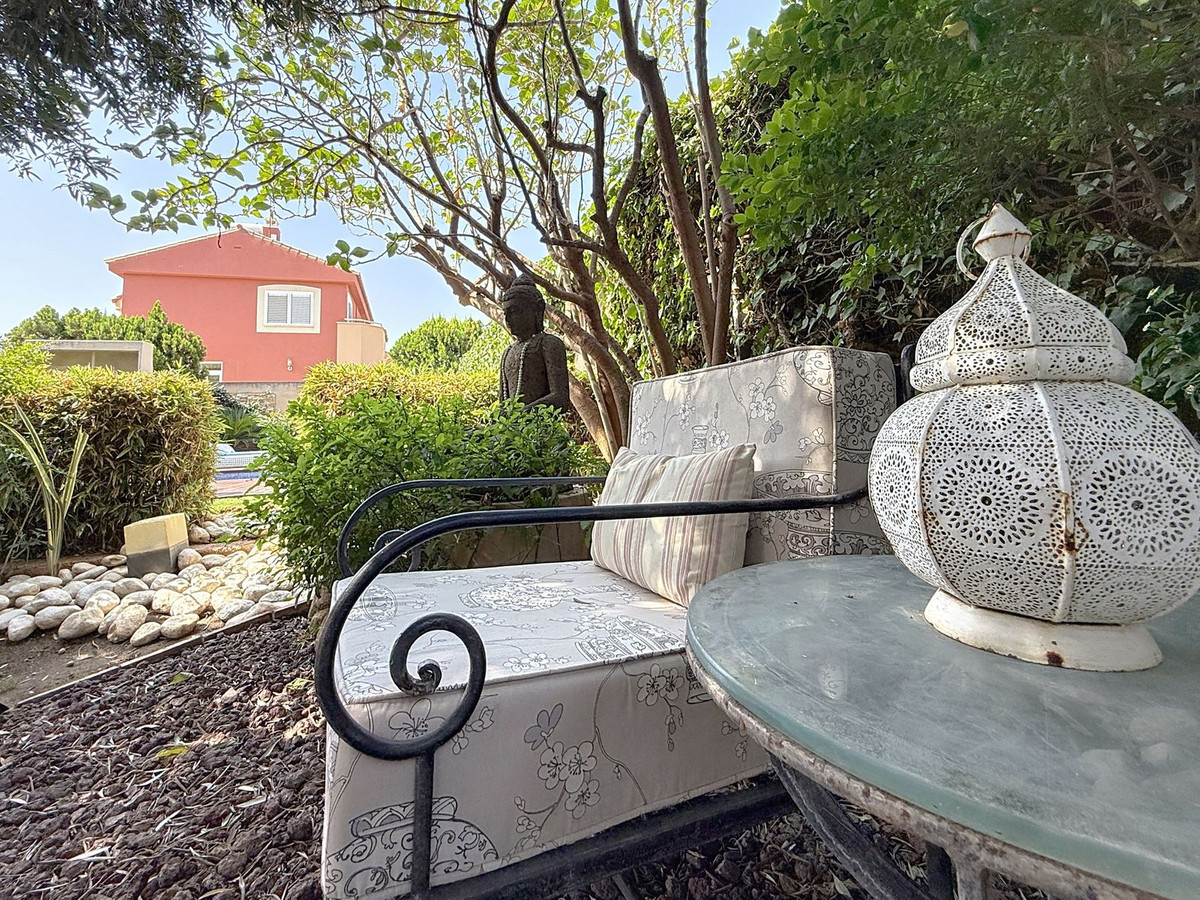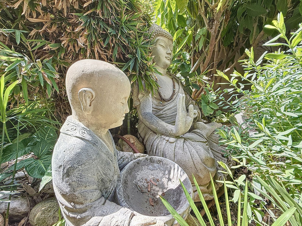 Dès que vous franchissez le portail privé, une sérénité absolue vous enveloppe. Les jardins forment un univers à part : un olivier centenaire veille sur la propriété, des statues de Bouddha invitent à la quiétude, des terrasses ombragées et des coins lounge intimes invitent à la détente. Au cœur de ce havre de paix se trouve une piscine de 6 x 4 m avec jacuzzi, nichée au cœur d'une végétation luxuriante et à l'ombre bienfaisante d'arbres matures – une oasis rare dans ce lieu privilégié.