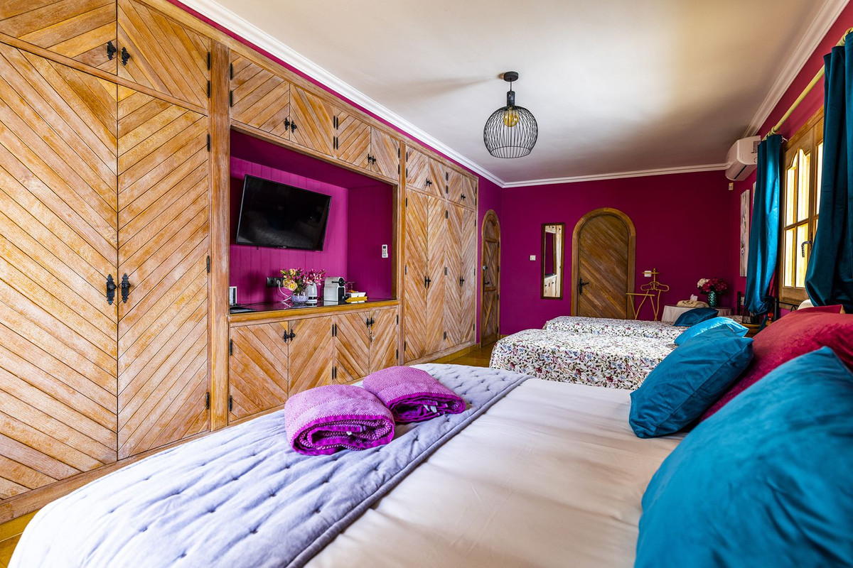 L'hébergement pour les invités comprend quatre chambres doubles spacieuses, dont une grande chambre familiale, toutes dotées d'une salle de bains privative et trois d'entre elles donnant accès à une terrasse. L'espace privé réservé aux propriétaires comprend une chambre double avec salle de bains privative, deux balcons-terrasses et une buanderie.