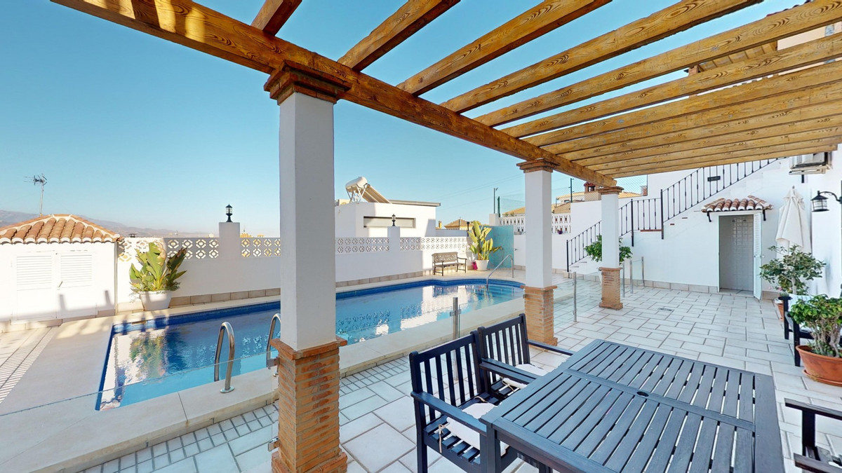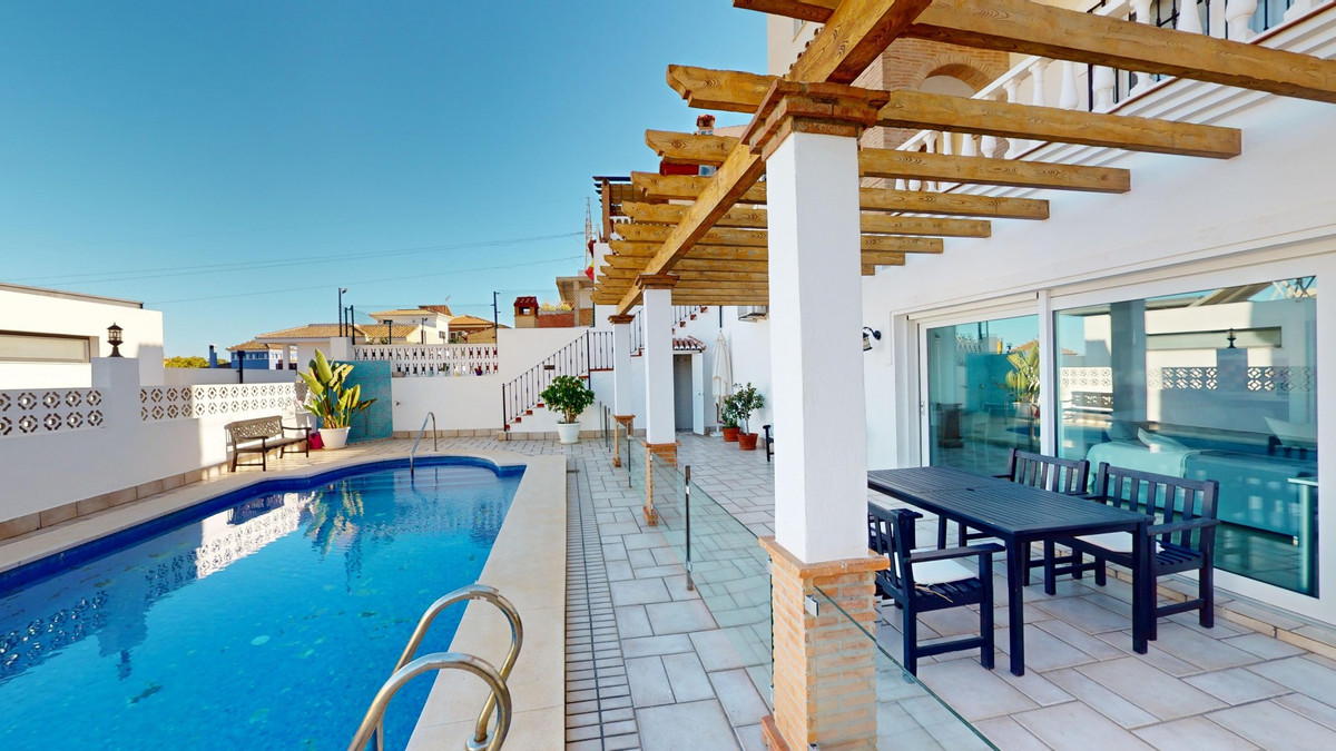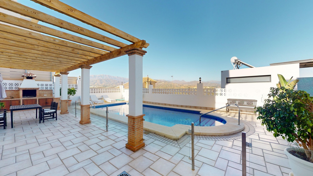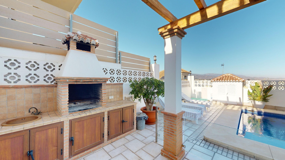 Découvrez le style de vie méditerranéen de vos rêves dans cette somptueuse villa de 3 chambres et 4 salles de bains, nichée au sein d'une résidence privée et sécurisée à Torre del Mar, où calme et sécurité sont primordiaux. Ce lotissement exclusif, avec seulement quelques résidences voisines, garantit intimité et tranquillité, à quelques minutes du centre animé de Torre del Mar et à seulement 5 minutes de ses superbes plages. Répartie sur trois étages baignés de lumière et couvrant 204 mètres carrés, cette demeure d'exception allie harmonieusement luxe moderne et charme espagnol traditionnel. Pénétrez dans un univers d'élégance, où les poutres apparentes en bois rustique ornent les hauts plafonds, créant une ambiance chaleureuse et raffinée. Le séjour et la salle à manger décloisonnés vous invitent à la détente et aux réceptions, baignés de lumière naturelle grâce à de grandes fenêtres offrant une vue imprenable sur la végétation luxuriante environnante. La cuisine gastronomique est un véritable paradis pour les passionnés de cuisine, avec ses élégants meubles en bois, ses plans de travail en granit haut de gamme et ses appareils électroménagers ultramodernes, le tout agrémenté de grandes fenêtres offrant un panorama exceptionnel. La suite parentale, un havre de paix spacieux de 16 m², allie style et confort, tandis que six salles de bains luxueuses, dont une aux accents turquoise, offrent une détente digne d'un spa à domicile. Conçue pour une clientèle exigeante, cette maison propose un parfait équilibre entre esthétique et fonctionnalité, avec notamment une buanderie et de nombreux espaces de rangement pour un confort optimal. Profitez d'une transition harmonieuse entre intérieur et extérieur grâce à de multiples espaces pour se prélasser sous le soleil espagnol, idéal pour recevoir ou se ressourcer en toute tranquillité. Située à quelques minutes en voiture de la promenade animée de Torre del Mar, cette propriété offre un cadre de vie idéal, alliant calme et proximité des commerces, cafés et restaurants. Torre del Mar est une ville côtière dynamique, réputée pour ses magnifiques plages, son ambiance balnéaire charmante et ses excellentes tables. Adoptez le style de vie méditerranéen et faites de cette superbe maison votre paradis personnel. Nous serons ravis de vous présenter prochainement cette propriété de rêve, en personne ou virtuellement. Car ce monde est unique, à l'image de notre Axarquía. En Andalousie. Sur la Costa del Sol. Ici, sous le soleil…