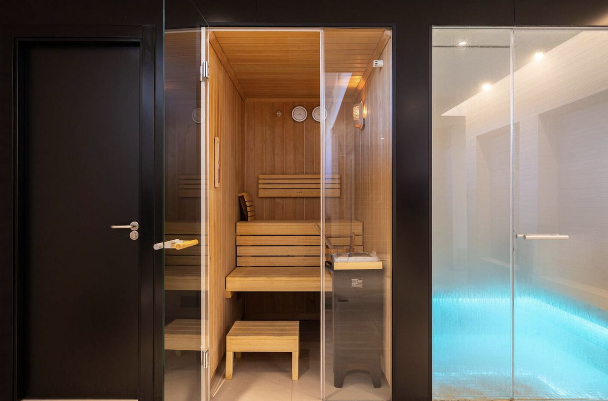 Équipements : Terrasse couverte, Ascenseur, Placards intégrés, Proximité des transports, Terrasse privée, Télévision par satellite, Wi-Fi, Salle de sport, Sauna, Paddle-tennis, Court de tennis, Local de rangement, Buanderie, Salle de bains privative, Accès PMR, Jacuzzi, Barbecue, Double vitrage, Domotique, Réception ouverte 24h/24, Fibre optique