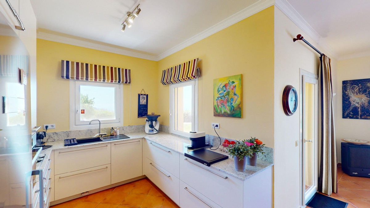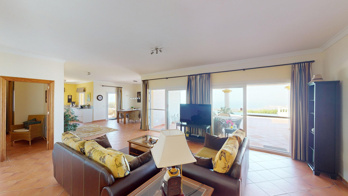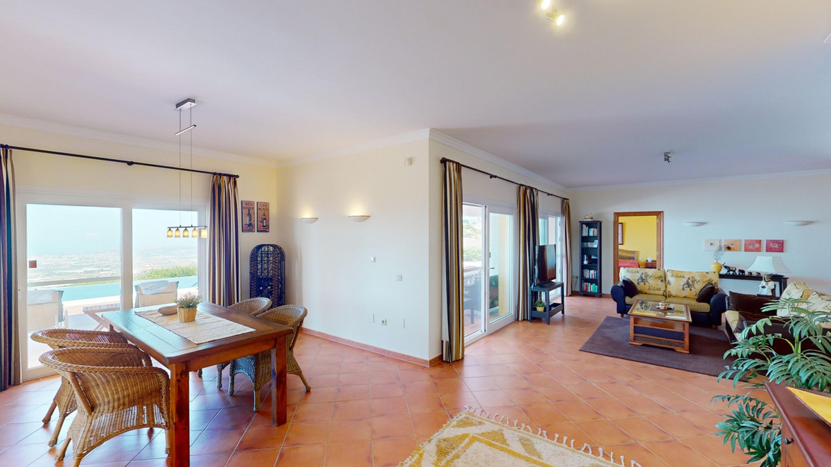 À vendre : une villa à couper le souffle située dans le cadre pittoresque d'Algarrobo, répondant à toutes vos envies et attentes d'une demeure de luxe. Cette propriété exceptionnelle impressionne non seulement par ses vues imprenables sur la mer, mais aussi par sa piscine à débordement qui se fond harmonieusement dans l'horizon, vous donnant l'impression de ne faire qu'un avec l'océan. La villa dispose de trois chambres spacieuses, chacune élégamment meublée et équipée d'une salle de bains privative, garantissant un confort et une intimité optimaux. Le séjour/salle à manger ouvert, avec sa cuisine moderne entièrement équipée, offre un espace généreux pour des soirées conviviales en famille ou entre amis. De larges baies vitrées laissent entrer une abondante lumière naturelle et offrent une vue imprenable sur la mer scintillante. Le chauffage au sol assure une atmosphère chaleureuse et confortable tout au long de l'année. De là, vous accédez à la terrasse couverte, véritable espace de vie extérieur supplémentaire. C'est l'endroit idéal pour admirer les couchers de soleil spectaculaires et les vues panoramiques sur le littoral. Le jardin soigné invite à la détente et offre un vaste espace pour vos loisirs. Une buanderie séparée avec de nombreux rangements ajoute au confort et à la praticité de cette villa. Plusieurs places de parking sont à votre disposition, vous assurant un séjour confortable et sécurisé. La villa bénéficie d'un emplacement paisible et idyllique, tout en offrant un accès facile aux commodités environnantes. Ici, vous profiterez d'une intimité et d'une détente absolues dans l'une des plus belles régions de la Costa del Sol. Cette propriété se distingue par la qualité exceptionnelle de sa construction et ses prestations exclusives. C'est le choix idéal pour ceux qui recherchent un bien d'exception et apprécient un style de vie luxueux dans un cadre unique. Laissez-vous charmer par cette villa de rêve et découvrez le meilleur de la vie ! Nous serons ravis de vous présenter prochainement cette propriété de rêve, en personne ou par visite virtuelle. Car ce monde est unique, à l'image de notre Axarquía. En Andalousie. Sur la Costa del Sol. Ici, sous le soleil…