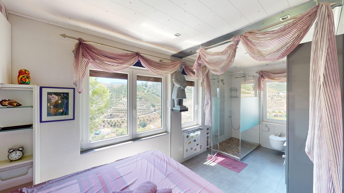 Stunning Villa Below Frigiliana for Sale. This impressive villa, nestled below Frigiliana, offers two separate living units across two floors, each with its own driveway and privacy. The upper unit spans 150 m2 and features a spacious open-plan living and dining area with an adjoining kitchen and convenient storage space. From the terrace, enjoy breathtaking views of the surrounding mountains. A standout feature of this apartment is the rotating fireplace in the living room, adding warmth and ambiance. Additionally, the terrace accommodates a fitness room. Another highlight is the luxurious bathtub in the living room, perfect for relaxing moments. The unit comprises three spacious bedrooms, two bathrooms (one en-suite in the master bedroom), and a guest toilet. The lower unit includes a cozy living and dining area with a kitchen, one bedroom, and a bathroom, totaling 80 m2 of living space. The entire house is equipped with underfloor heating, air conditioning, and a central vacuum system, built to the highest German standards with excellent insulation and quality materials. A solar panel system on the roof provides heating and hot water. The outdoor area of this exceptional villa leaves nothing to be desired. There is a heated saltwater pool with an easy-to-operate cover, a relaxing jacuzzi, and a fully equipped outdoor kitchen with a sauna. Additionally, there is a workshop, a caravan, and another small building at the foot of the property. The 6000 m2 plot is adorned with numerous fruit trees, inviting nature lovers to linger. The villa boasts good connectivity and is perfect for those who appreciate a tranquil lifestyle amidst nature. Experience luxurious living in a breathtaking location your new home below Frigiliana awaits! We are pleased to be able to present this dream property to you soon, either personally or via virtual viewing. Because this world is unique - just like our Axarquía. In Andalusia. On the Costa del Sol. Here, on the sunny side of life...