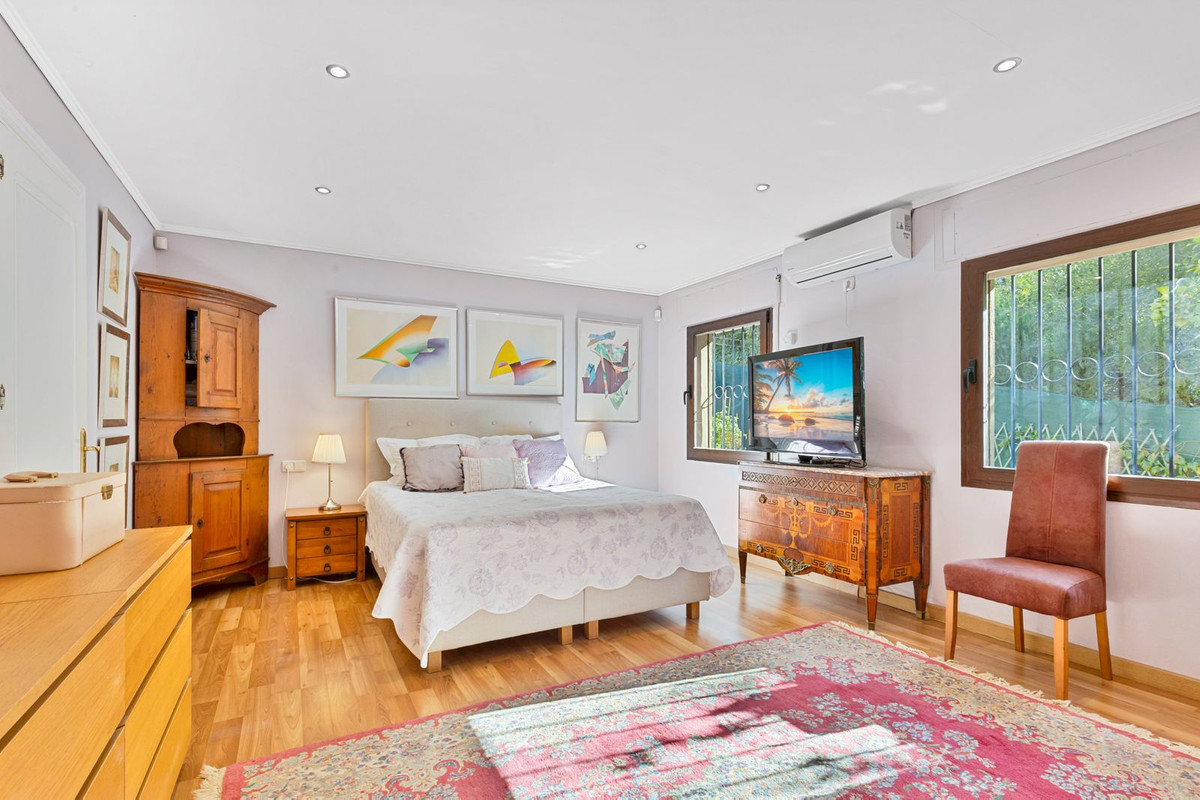 Charming and well-maintained villa on one level in the quiet area of ​​Campo Mijas only 3 km from the beach in Fuengirola. The villa is very private with a nice pool area with bar and large terrace areas. The garden is easy to maintain as it is mostly paved with stones but with nice flower beds with several fruit trees such as passion fruit, lemon, orange, pomegranate, mango and sweet, Spanish "nisperos".