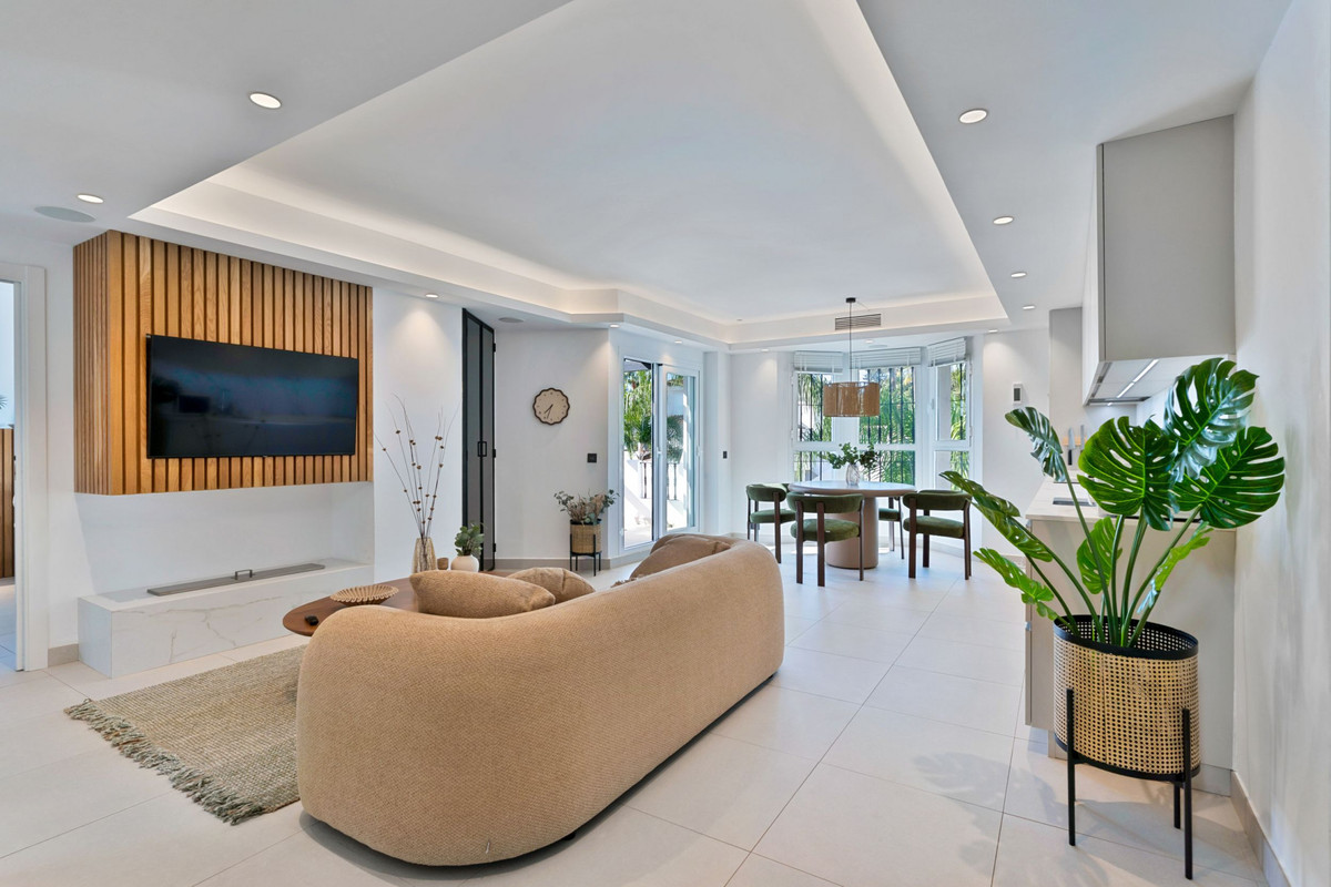Ce penthouse en duplex est situé à Los Naranjos de Marbella, dans le quartier prisé de Nueva Andalucia, à Marbella, dans la province de Malaga. Il comprend trois chambres et trois salles de bains, offrant un espace de vie confortable pour les familles ou les groupes.