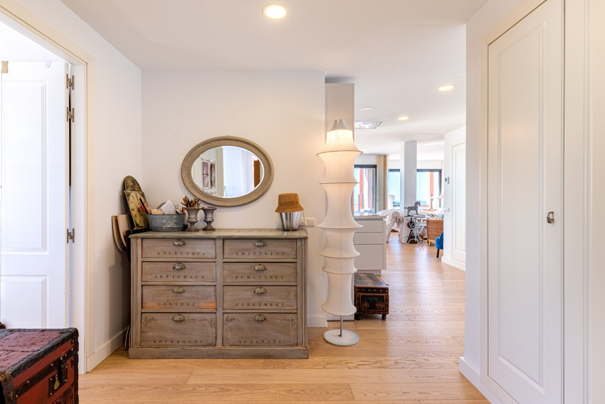 De plus, le couloir de l'appartement comporte de nombreux placards intégrés pouvant servir d'espace de rangement supplémentaire.