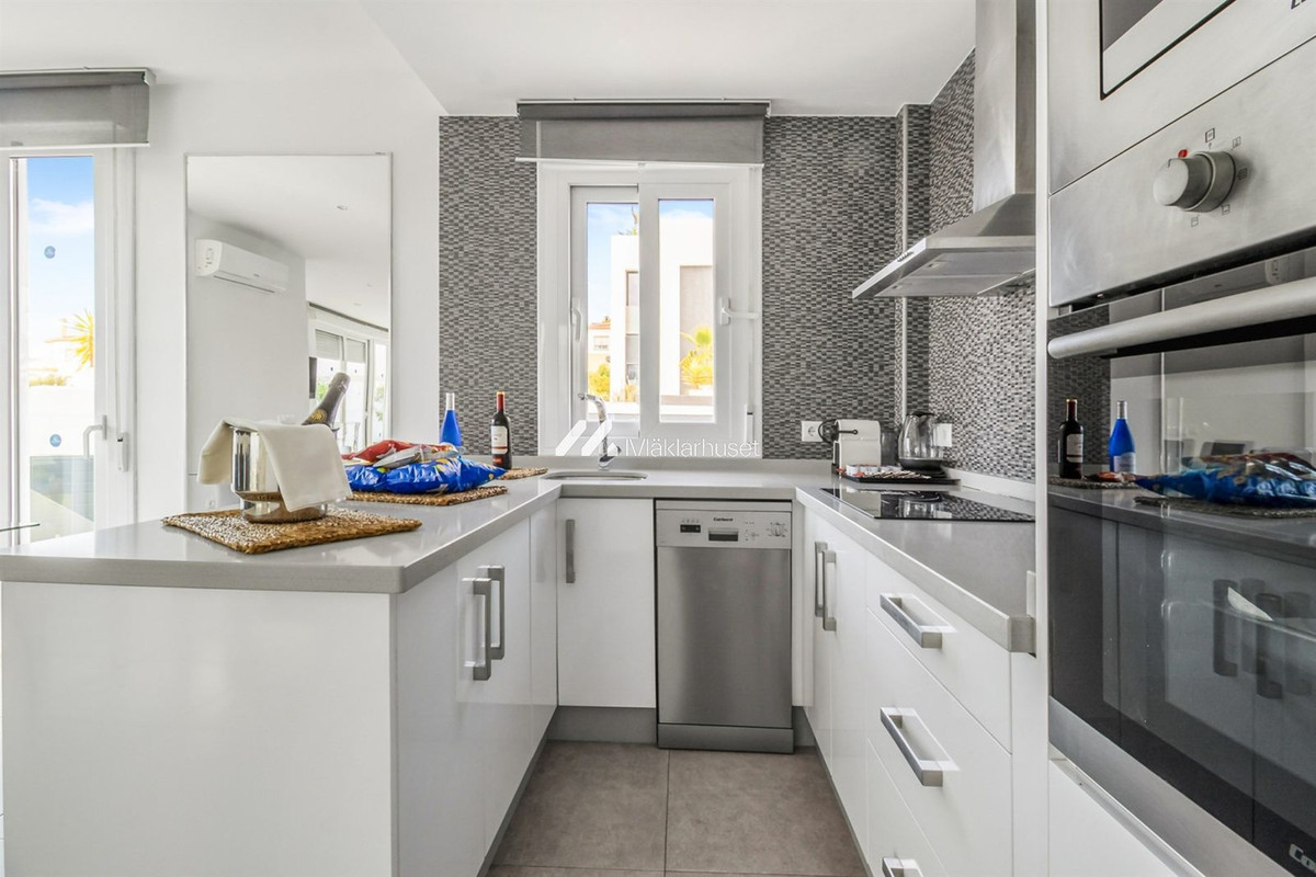 L'agencement ouvert crée une atmosphère lumineuse et aérée, reliant harmonieusement le salon, la salle à manger et la cuisine contemporaine – véritable cœur de la maison. De là, on accède à une terrasse impressionnante, où un luxe absolu vous attend : une piscine privée d'eau salée, de vastes espaces de détente et une cuisine d'été exclusive qui transforme chaque repas en une expérience unique.