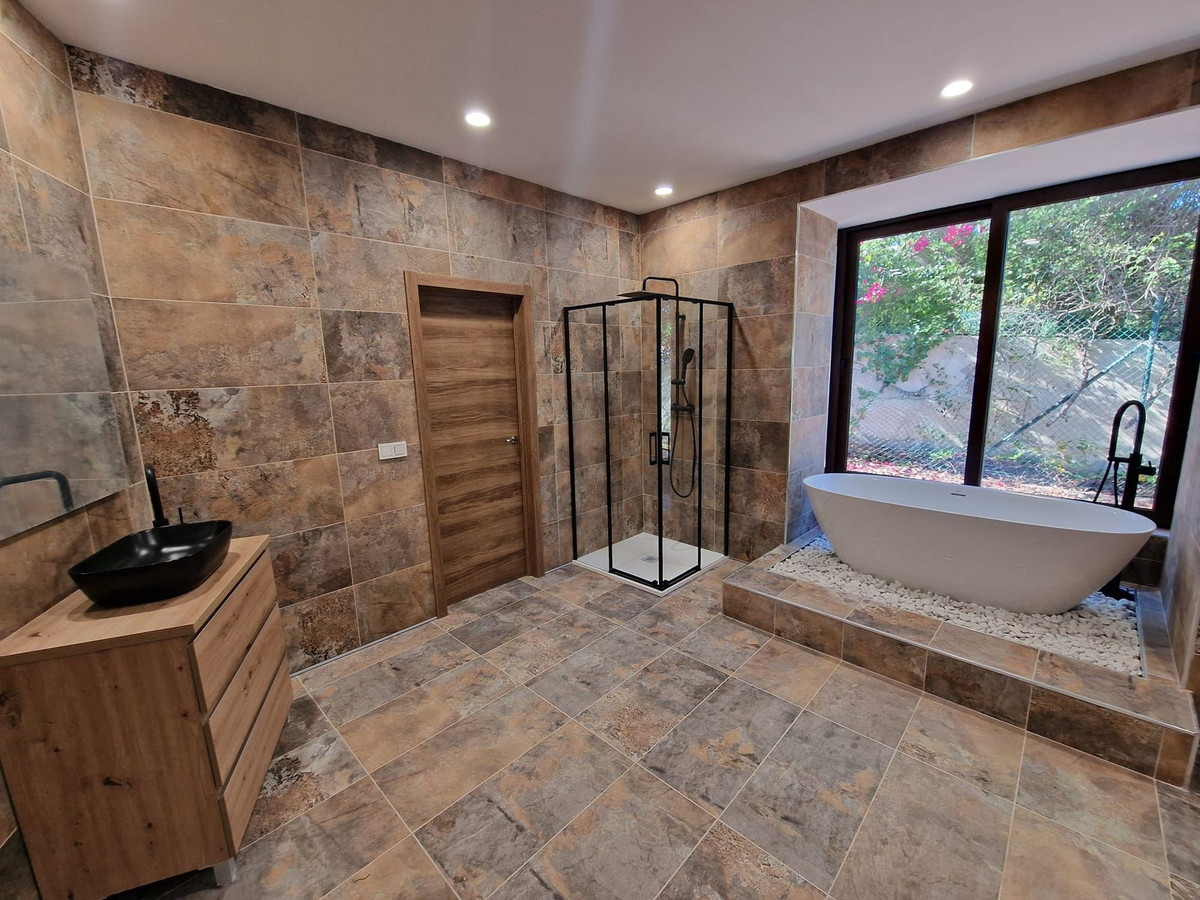 Villa individuelle à Sotogrande. Entièrement rénovée, elle comprend 4 chambres, 4 salles de bains, un WC invités, un vaste séjour avec cheminée, un grand salon et une grande cuisine dînatoire. Garage fermé, grand jardin, piscine et court de tennis. Surface habitable de 682 m² sur un terrain de 2 400 m².