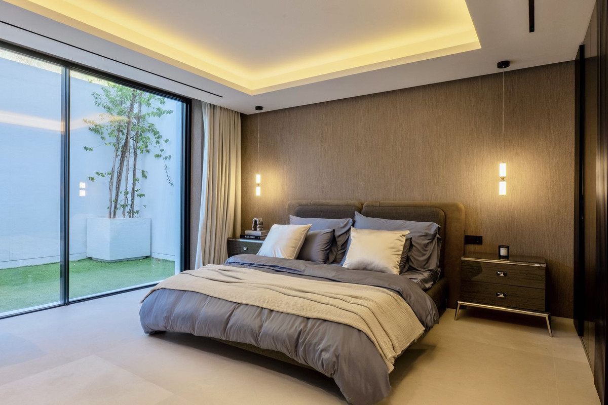 Dotée de 7 chambres spacieuses et de 8 salles de bains élégamment aménagées, cette villa offre une configuration idéale pour les familles nombreuses, les invités ou ceux qui recherchent une résidence luxueuse en toute intimité. Chaque espace, baigné de lumière naturelle et meublé avec soin, crée une atmosphère chaleureuse, accueillante et raffinée.