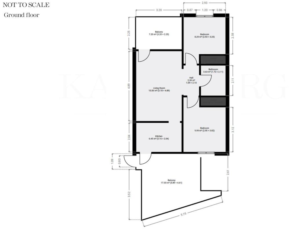 La propriété offre une surface construite totale de 56 m², complétée par 9 m² de terrasse, judicieusement répartis entre une terrasse avant et une terrasse arrière fermée.