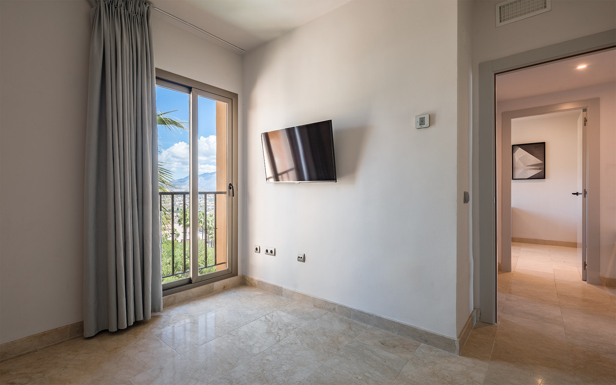 L'agencement comprend un hall d'entrée accueillant qui mène à un espace de vie lumineux et spacieux comprenant un salon et une salle à manger, avec accès à deux magnifiques terrasses. La terrasse orientée sud-est offre une vue imprenable sur le mont La Concha, le golf d'Atalaya et la mer, tandis que la terrasse orientée sud/sud-ouest permet d'admirer des panoramas maritimes exceptionnels et des couchers de soleil inoubliables.