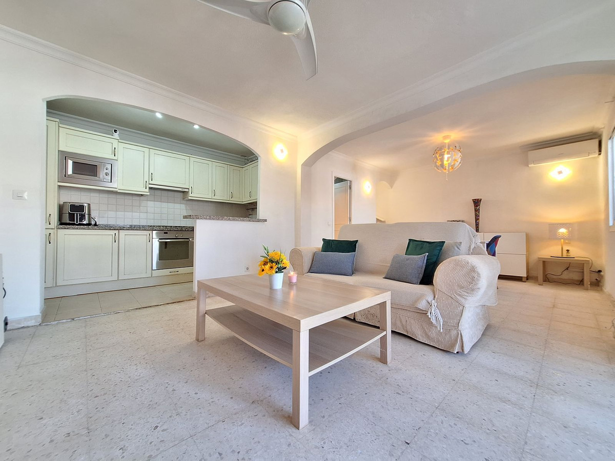 Cette maison mitoyenne de 2 niveaux, bien agencée, comprend 2 chambres et 2 salles de bains. Elle se situe dans une résidence sécurisée à la frontière de Marbella et d'Estepona, à proximité de la plage, des commerces, des transports, des écoles, etc.