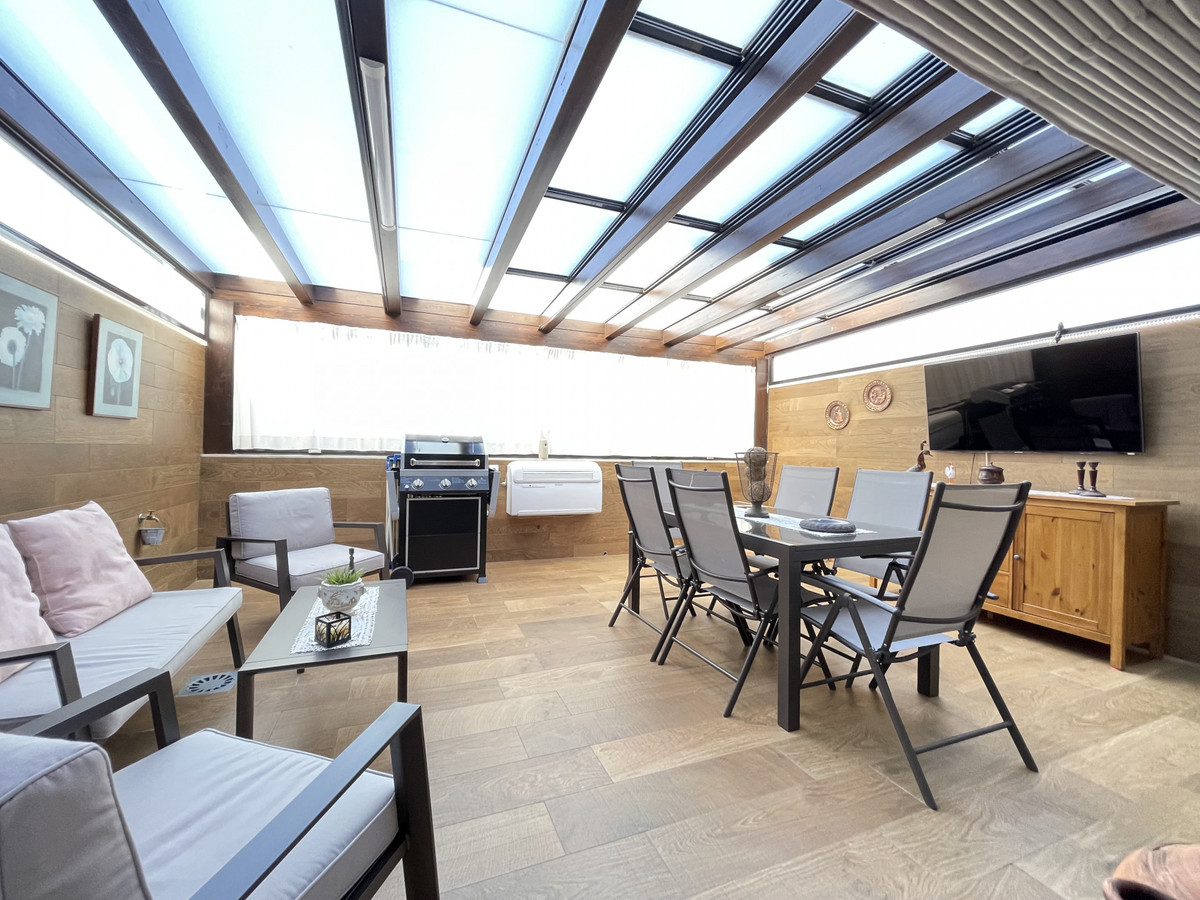 La pièce principale donne sur une grande terrasse privée, idéale pour recevoir ou profiter du barbecue. La résidence offre des espaces communs tels qu'une piscine et un jardin, vous permettant de vous détendre sans quitter les lieux. De plus, la propriété est située dans une résidence sécurisée avec caméras de surveillance, ce qui renforce la sécurité.