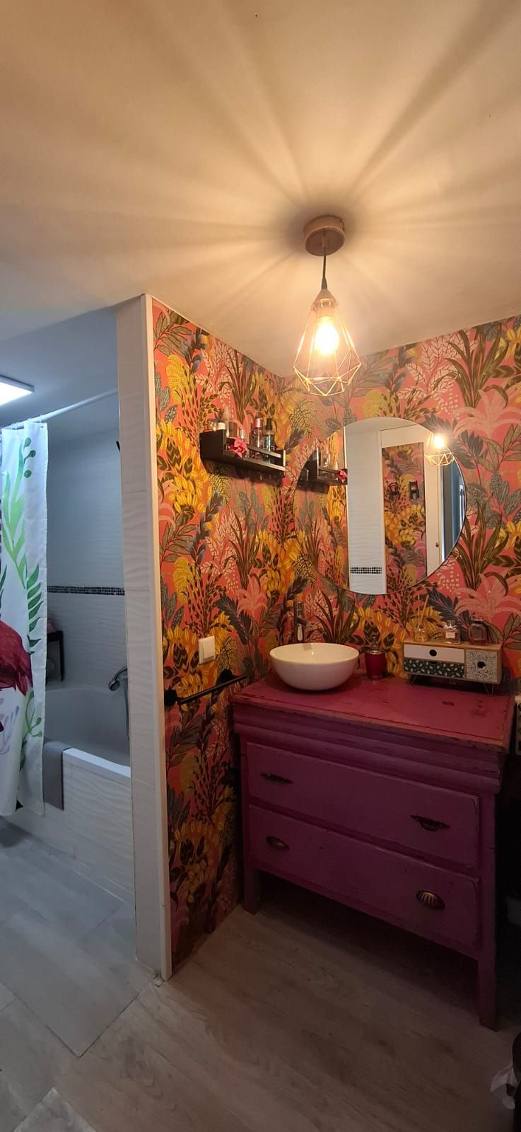 Cuisine entièrement équipée avec appareils intégrés et design pratique.