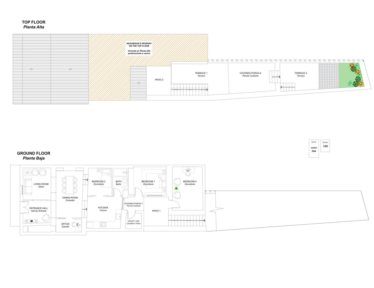 On y trouve également un cellier pratique et une grande salle de bains moderne. La cuisine donne directement accès à l'extérieur, où plusieurs espaces de détente vous attendent : terrasses, coins lounge confortables, jardin et toilettes extérieures – un atout indéniable pour profiter pleinement du climat andalou.