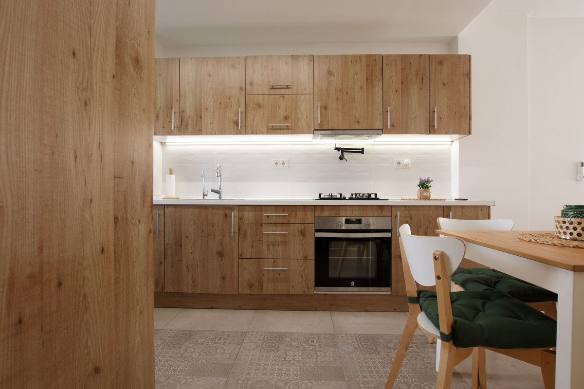 We are selling this ground floor apartment with a private terrace and garden, completely renovated in a modern style with an open-plan American-style kitchen.