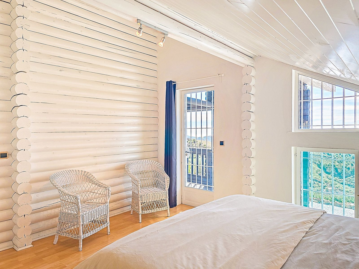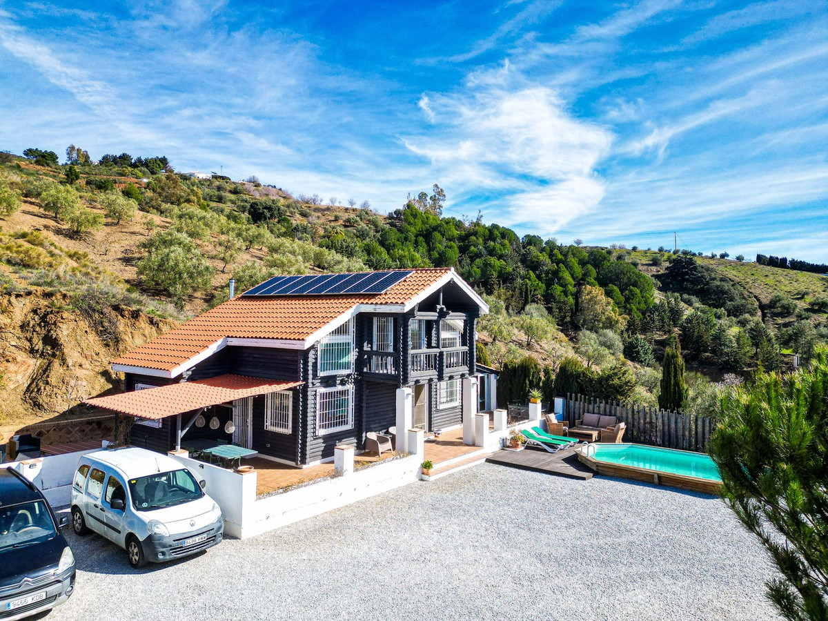 This charming south-facing wooden chalet is set on a generous 2,555 m² plot in a superb and tranquil location, offering beautiful views of the mountains and the sea. It is ideally situated just 5 minutes by car from Canillas de Albaida and Árchez, and only 10 minutes from Cómpeta. The property has excellent access with no rough or dirt tracks.