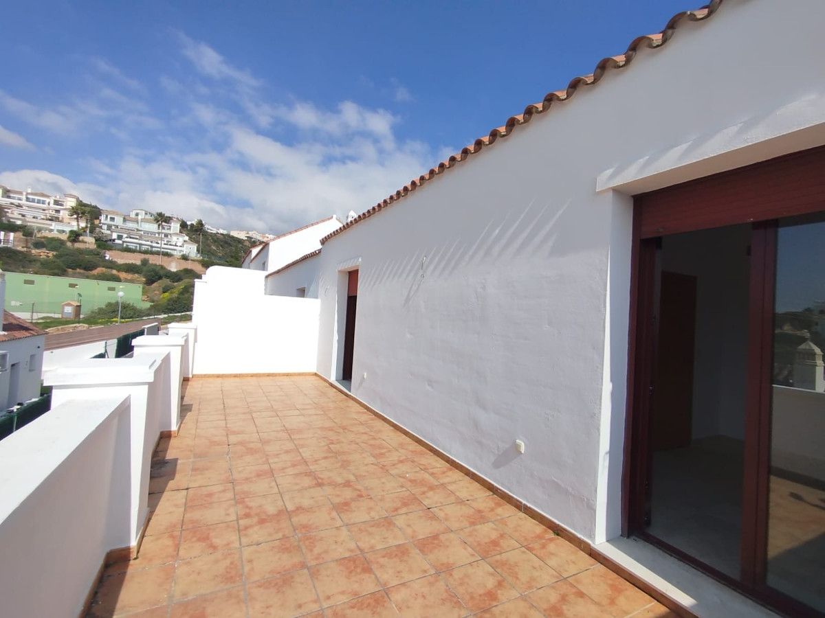 The upper floor houses the sleeping area, with an entrance hall, hallway, two bedrooms with built-in wardrobes and two full bathrooms, offering privacy and comfort. It also features a large open terrace, ideal for enjoying the Costa del Sol climate and impressive panoramic views.