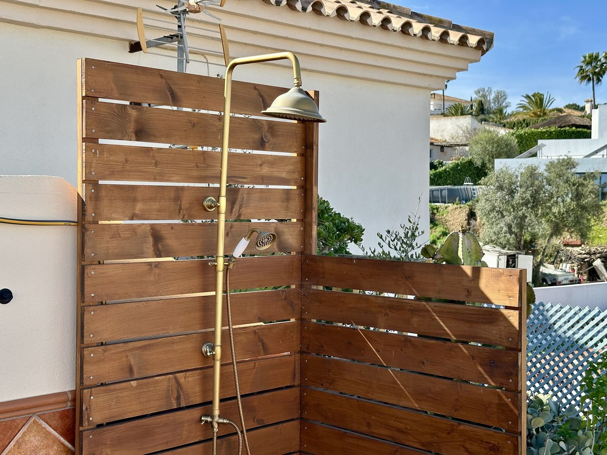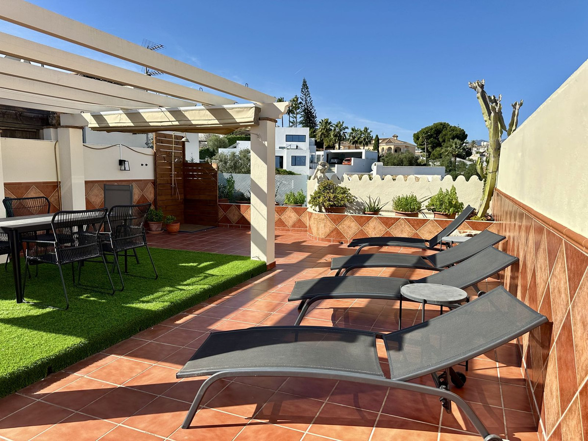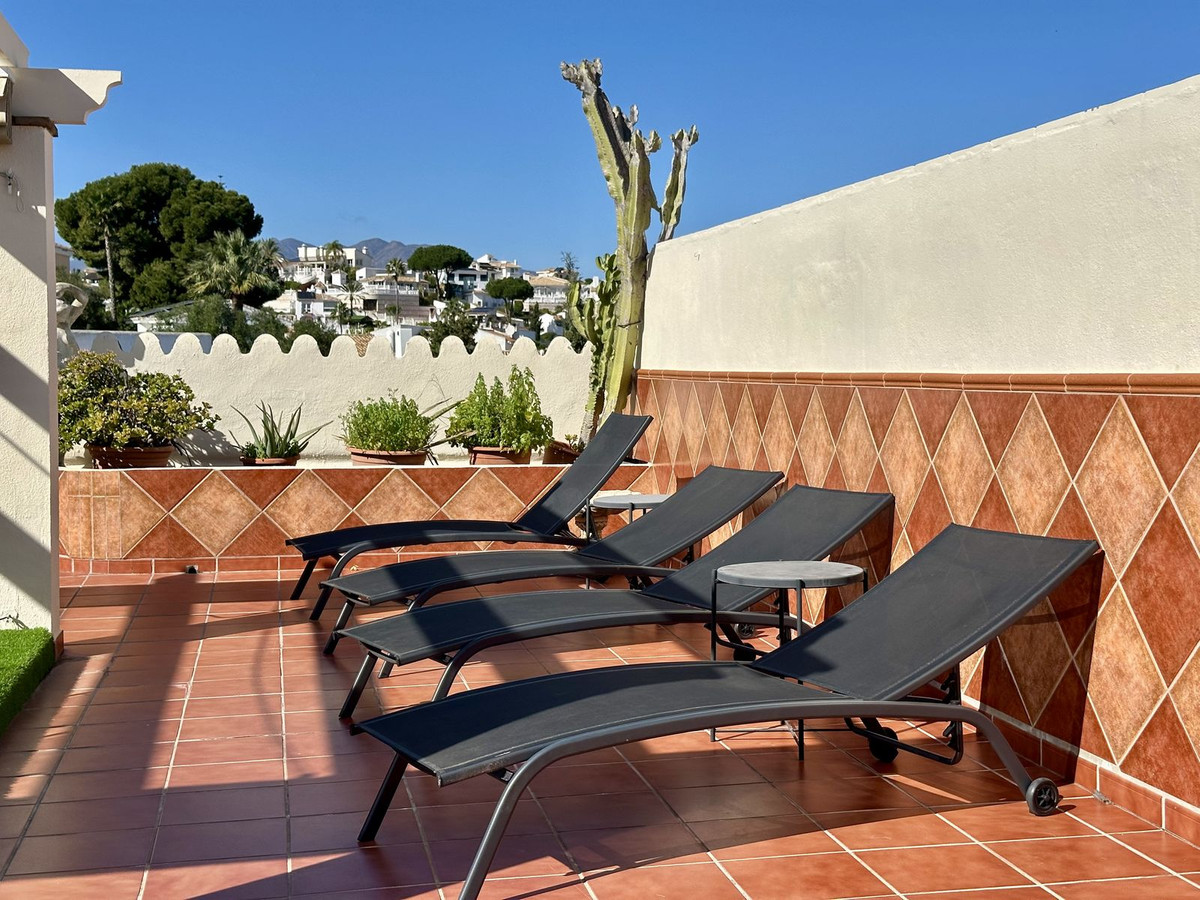 From the living room you enter a south facing good size terrace. However, if you walk up the external spiral staircase, you find yet an other extremely large solarium, where you can enjoy the most incredible views of both the sea, the enchanting mountains & all the green areas around Cerros del Aguila.