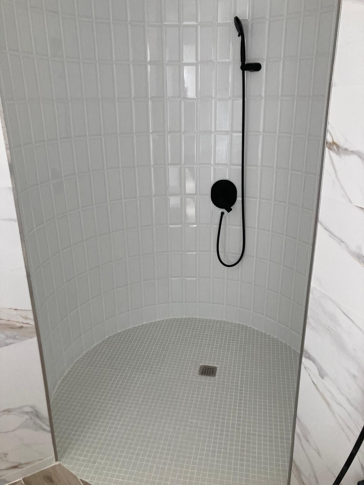 1 full bathroom with a large shower.