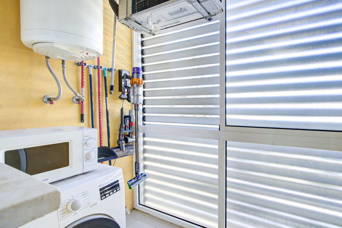 The spacious and cosy living-dining room is the true heart of the home. From here you can access a magnificent enclosed terrace with a sliding glass system, which can be opened completely to enjoy the Mediterranean climate all year round.