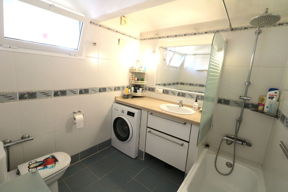 À l'étage, la propriété offre un espace de vie lumineux et ouvert avec de hauts plafonds, un coin repas et une cuisine entièrement équipée. Un petit escalier mène ensuite au salon principal et à l'accès à la grande terrasse, dont une partie est couverte pour profiter d'un apéritif au coucher du soleil ou simplement du climat méditerranéen.