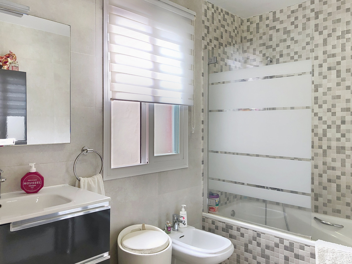 Upstairs, the home boasts three well-appointed bedrooms, each with built-in wardrobes for optimal storage. The spacious master bedroom benefits from two private terraces, creating additional areas to enjoy the fresh air and sunshine. A large family bathroom serves this floor, combining comfort and functionality.