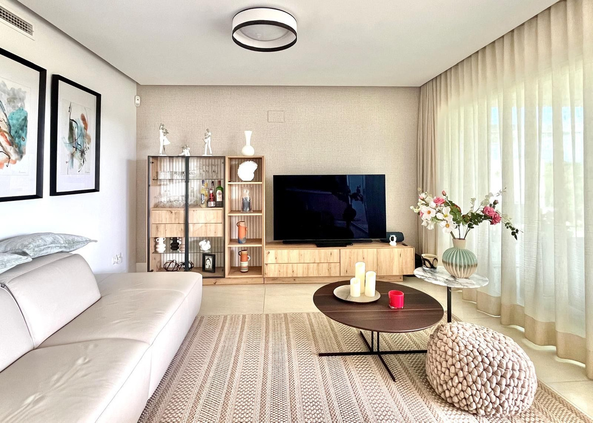 Contemporary apartment on the front line of the prestigious San Roque Golf, offering an elegant living environment between lush fairways and open views towards the Mediterranean Sea. This 3-bedroom, 2-bathroom apartment of approximately 116 m² is located in a recently built residence with modern design, in a quiet and secure setting just a few minutes from Sotogrande.