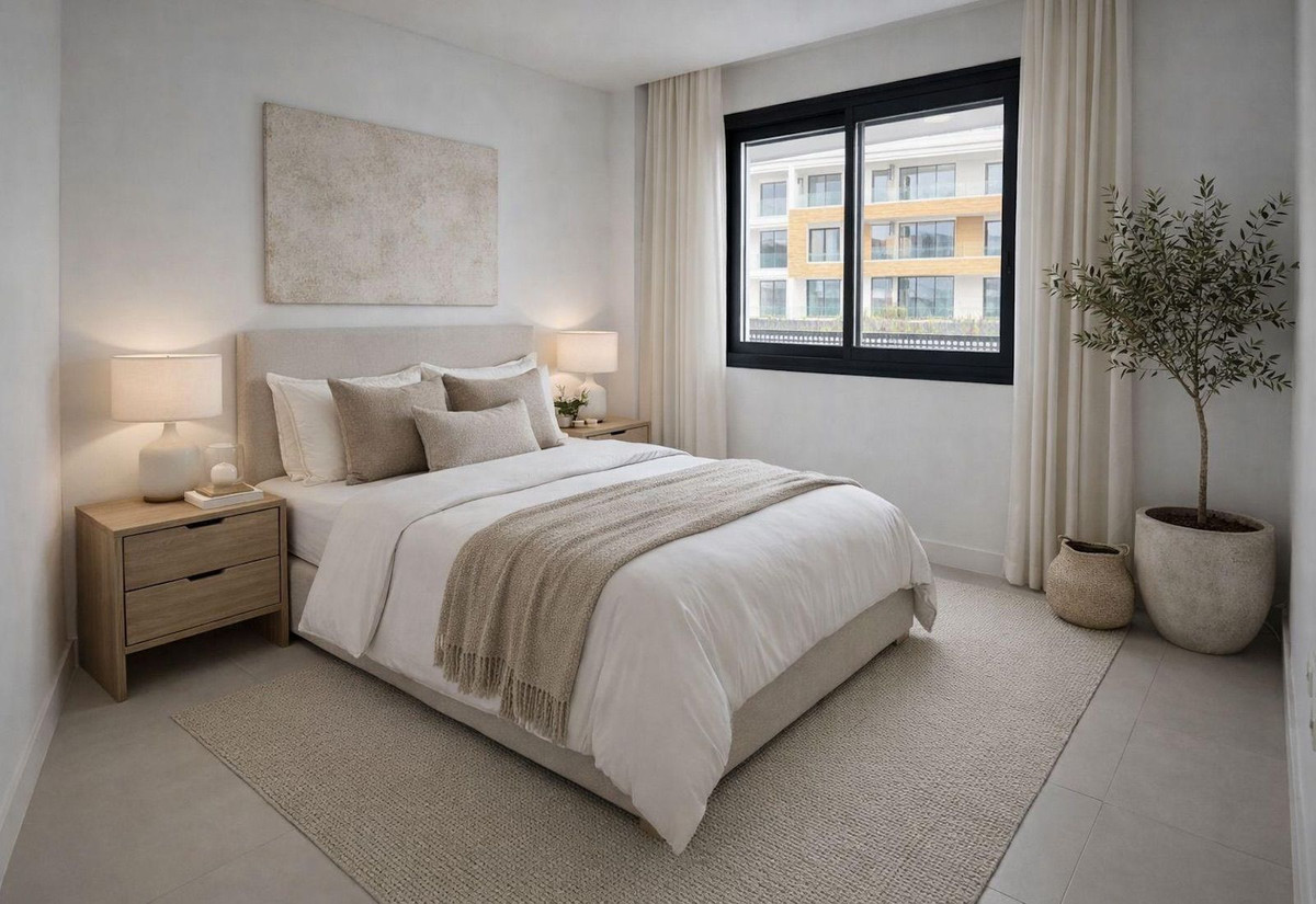 The project combines contemporary architecture with Mediterranean surroundings, offering bright homes, landscaped communal areas and swimming pools designed for comfort and quality of life.