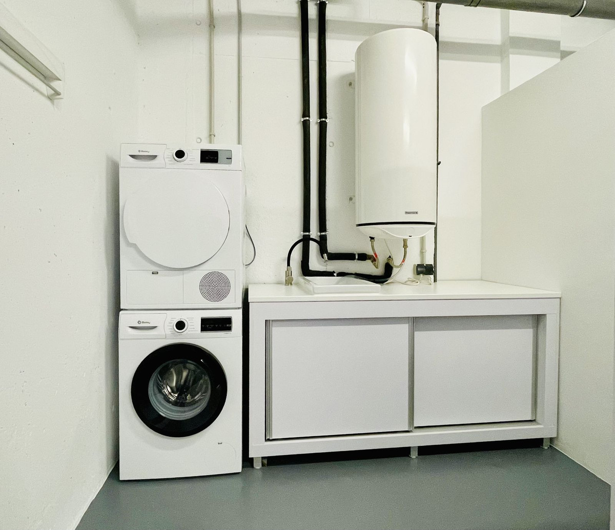 Offering a nice level of privacy, the terrace provides ample space for lounge and dining areas while overlooking the surrounding golf course. In the basement, a large private garage with direct internal access is complemented by additional storage space. An integrated laundry area, generous custom-made fitted cabinets, and a practical wine fridge ensure excellent organization and storage solutions. Furniture is available upon request as an additional option.