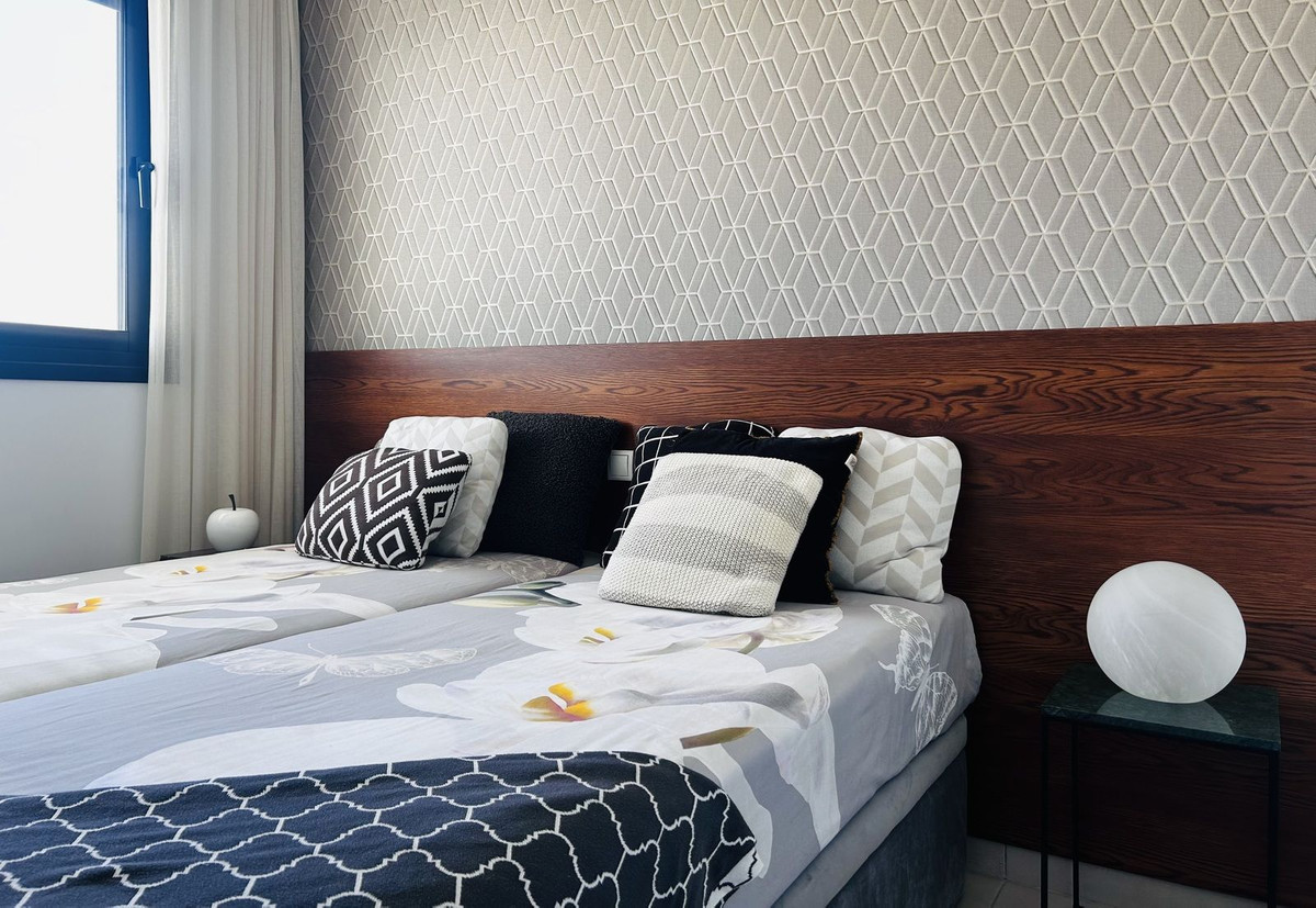 Ce penthouse, situé en première ligne du célèbre golf « Campo America », offre une vue panoramique imprenable sur les montagnes, les parcours et la mer Méditerranée. Il se déploie sur deux niveaux. Au rez-de-chaussée, l’élégant séjour-salle à manger s’ouvre sur une vaste terrasse où le lever du soleil se transforme en un spectacle grandiose. La cuisine américaine, entièrement équipée avec des appareils Bosch, est idéale pour les repas en famille et dispose de rangements pratiques. Deux chambres supplémentaires, offrant confort et intimité, bénéficient d’une vue magnifique sur le golf et partagent une salle de bains.