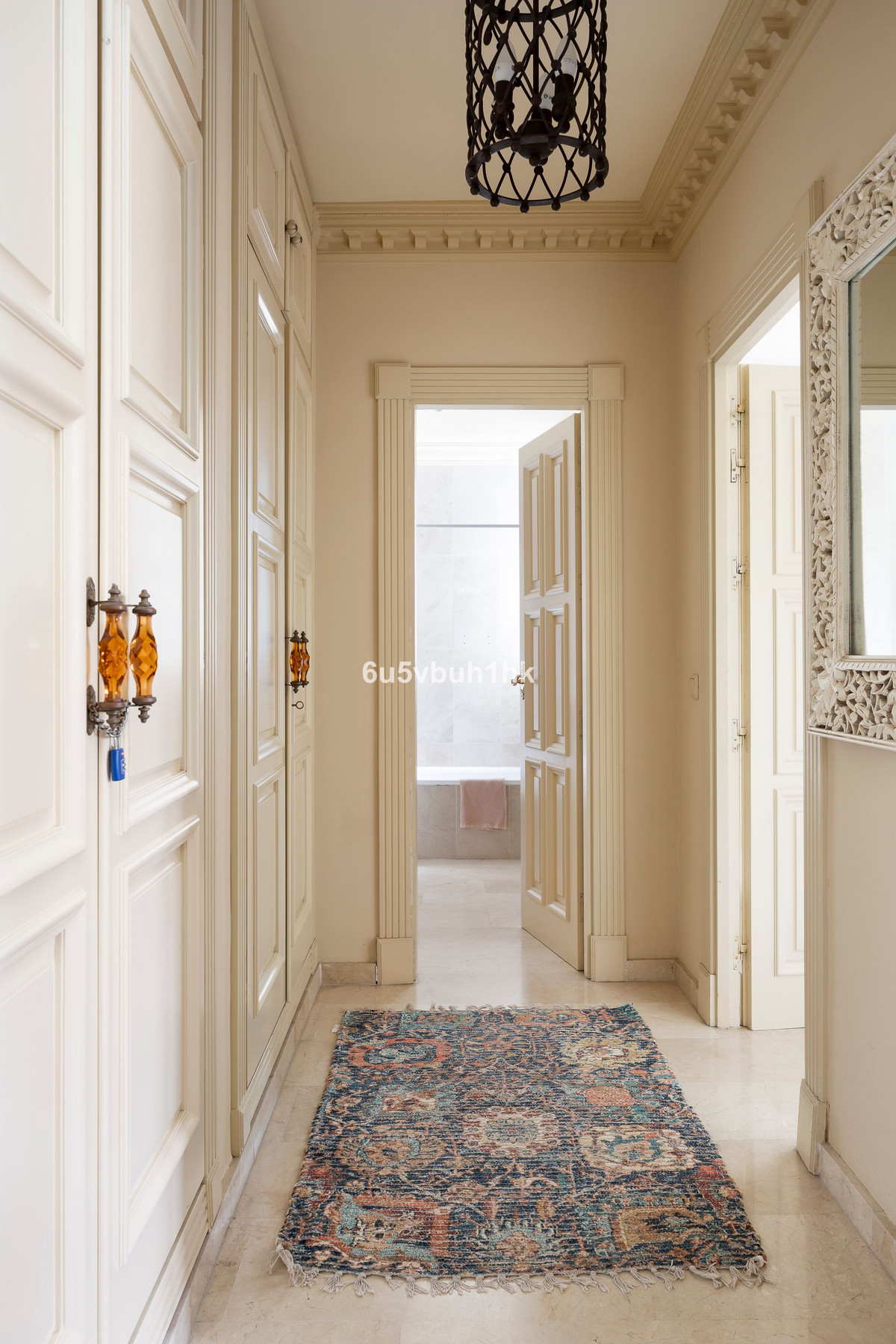 A refined dining area leads to a second terrace overlooking the immaculately landscaped gardens of the urbanization. The property also boasts a large independent fully fitted kitchen, with space for an informal dining area and a dedicated laundry area. Elegant marble flooring throughout the entire property adds a timeless sense of sophistication and continuity to the interior spaces.