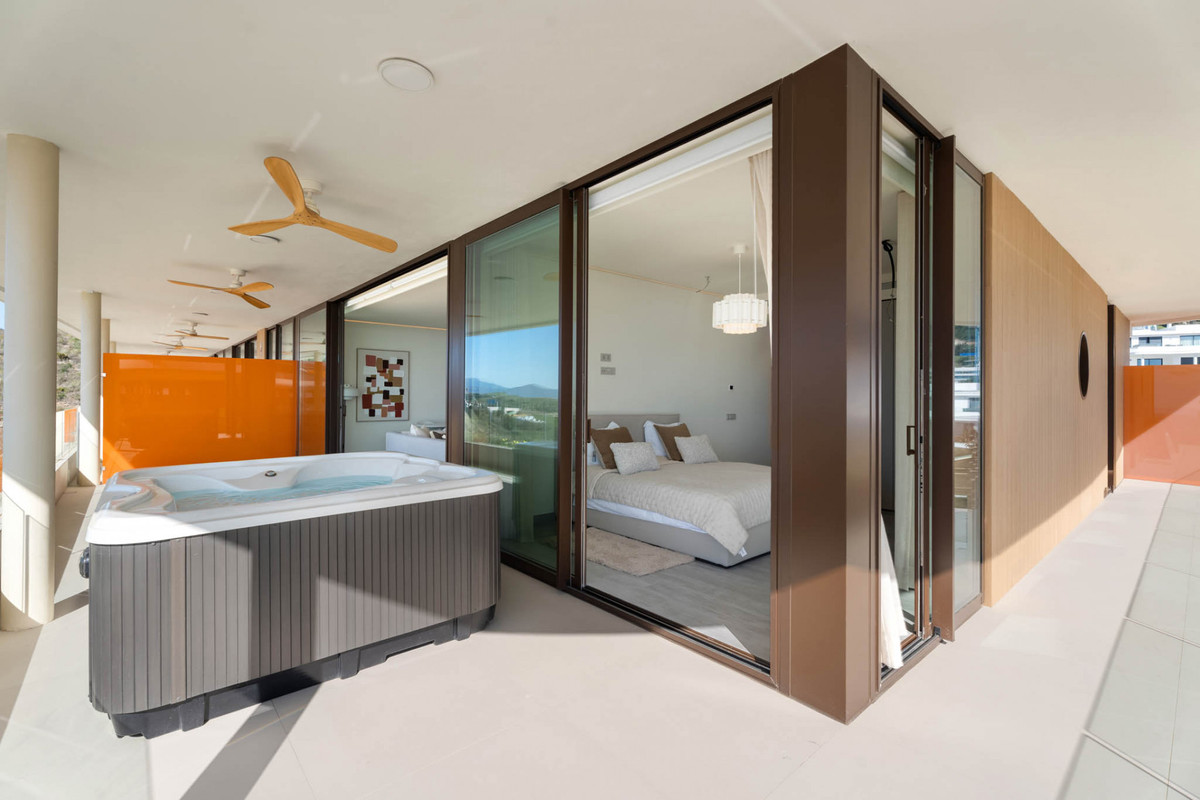 Situaded within a secure residential enclave in El Higuerón, this brand-new three-bedroom corner apartment offers refined contemporary living with open sea and valley views.
