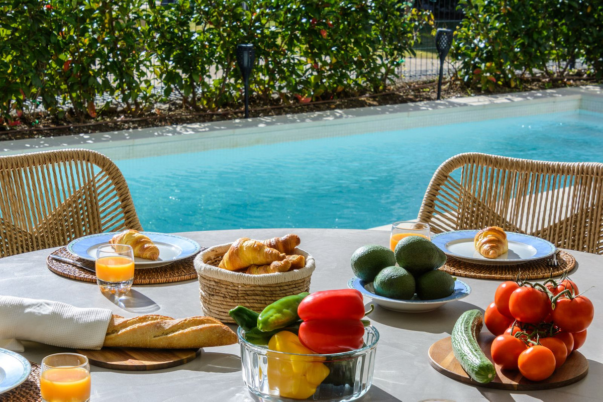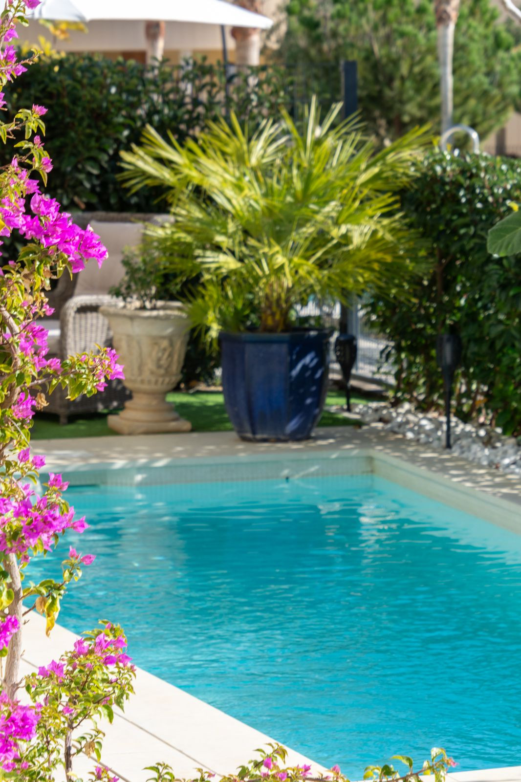 Private heated swimming pool (16.5 m²) with outdoor shower
