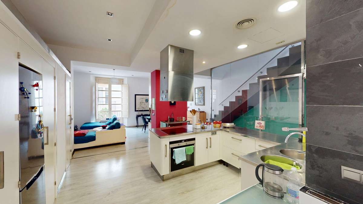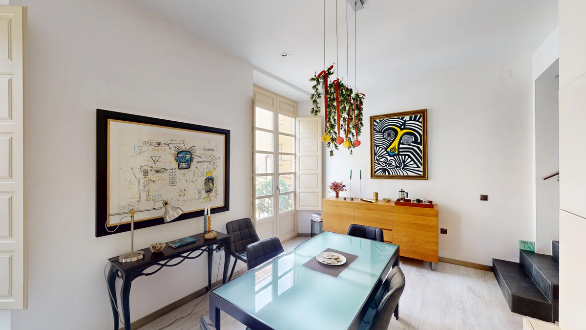 In the very heart of Málaga, just steps from the emblematic Plaza de la Merced, this exceptional four-storey townhouse with solarium offers 330 m2 of built space and an extraordinary level of versatility in one of the citys most sought-after locations. The ground floor is currently arranged as an office-style space, but its true value lies in its flexibility. It can easily be transformed into a generous living area, a private office, a gym, a garage, or a combination of uses, adapting perfectly to both residential and mixed lifestyle needs. The second floor forms the social heart of the home, featuring an industrial-style kitchen that flows seamlessly into the living and dining areas. On this level there is also a separate space, currently used as a chill-out area, with access to a small terrace, as well as a convenient guest toilet. The third floor is dedicated to the main suite, offering a spacious bedroom, a large walk-in wardrobe and an elegant en-suite bathroom. From here, there is direct access to a well-sized private terrace, ideal for enjoying Málagas climate in total privacy. On the fourth floor, a second bedroom with en-suite bathroom and ample wardrobe space provides comfort and independence. This level also offers the possibility of enlarging the space thanks to the mansard-style roof, adding further potential to an already impressive home. Crowning the property is a spectacular solarium with open city and mountain views. This rooftop space includes a covered area with a well-equipped kitchen, making it perfect for entertaining, relaxing or enjoying sunsets over Málaga. The house is prepared for the installation of a lift, with the built shaft already in place, and features air conditioning in every room, ensuring comfort throughout the year. A unique property combining space, character and potential in a prime central location, ideal as a distinctive private residence or a high-value investment in Málaga city centre. We are pleased to be able to present this dream property to you soon, either personally or via virtual viewing. Because this world is unique - just like our Axarquía. In Andalusia. On the Costa del Sol. Here, on the sunny side of life...