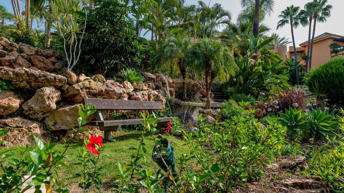 This residential complex, with 24-hour security, lush tropical gardens, pools, and waterfalls, also offers a SPA area, jacuzzi, indoor pool, and gym, and is located approximately 2 km from Marbella center and its beaches. Designed by the renowned architect Melvin Villarroel, it was built with premium materials and unique features that give it a distinctive character.