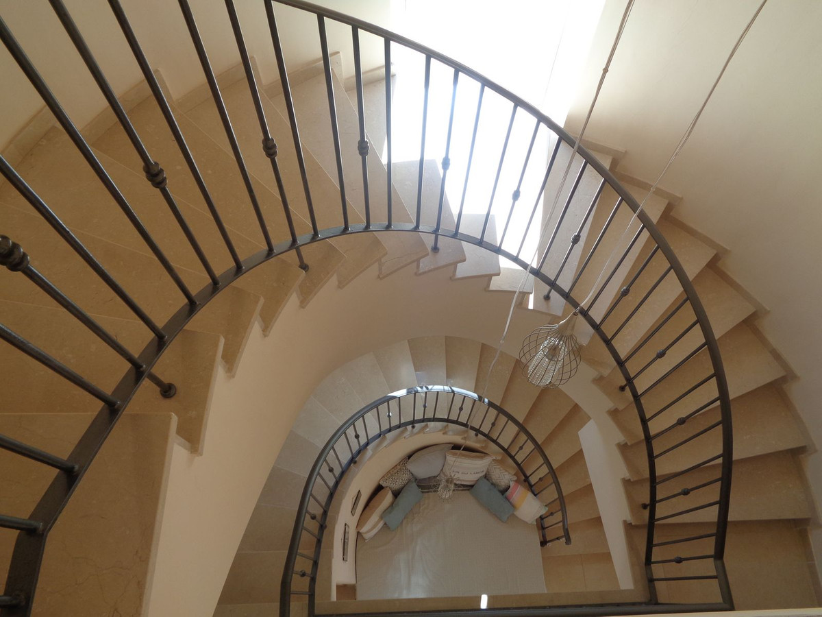 From the entrance hall you have access to the impressive Spiral staircase taking you to both the first and second floors. On the first floor landing you have two ensuite double bedrooms, terrace and a dressing room that could be used as an office or single bedroom..You also have access to the machinery room that house the electronics that control the home demotic system.