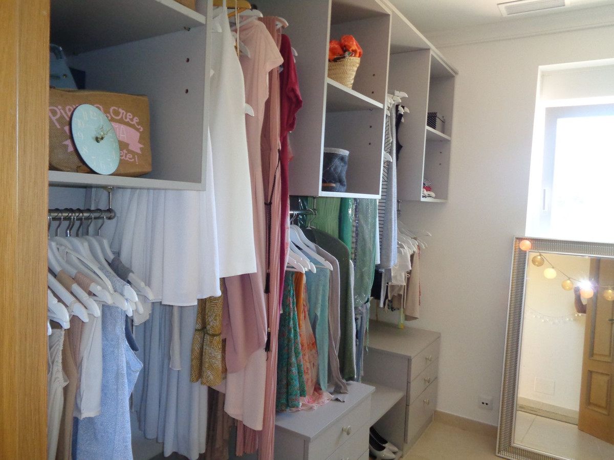 The recently refurbished dressing room is fully fitted with shelving, drawers and rails.
