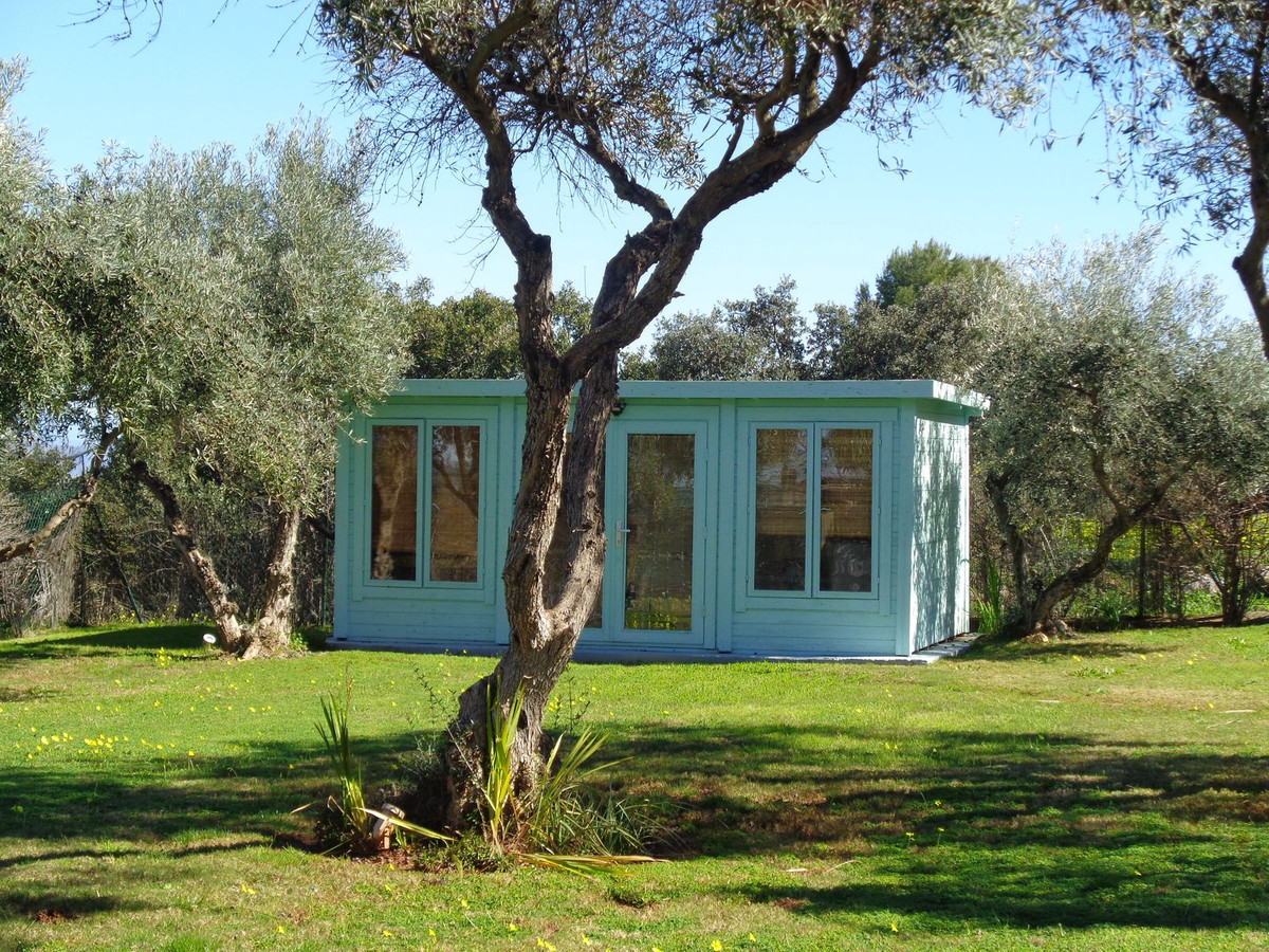 Pass through the archway and you enter the spacious lawned Olive Grove. Also in this locale is a wooden workshop. It has electricity, air con and lighting, ideal as a summer house, for hobbies and crafts or a cosy retreat.