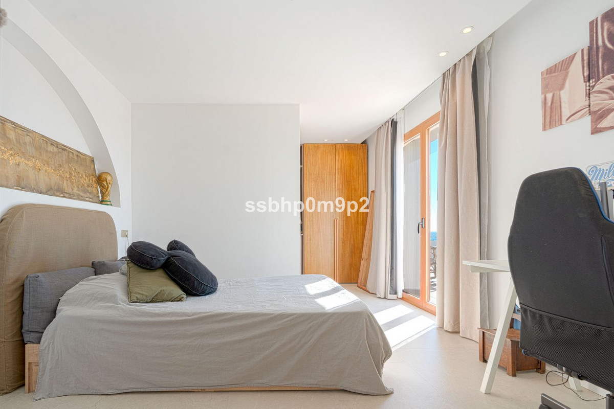 The main suite features a high-end bathroom with dual facing washbasins, two independent WC areas and a spacious walk-in shower. On the upper floor, there are four additional bedrooms, all bright and spacious, each with its own en-suite bathroom.