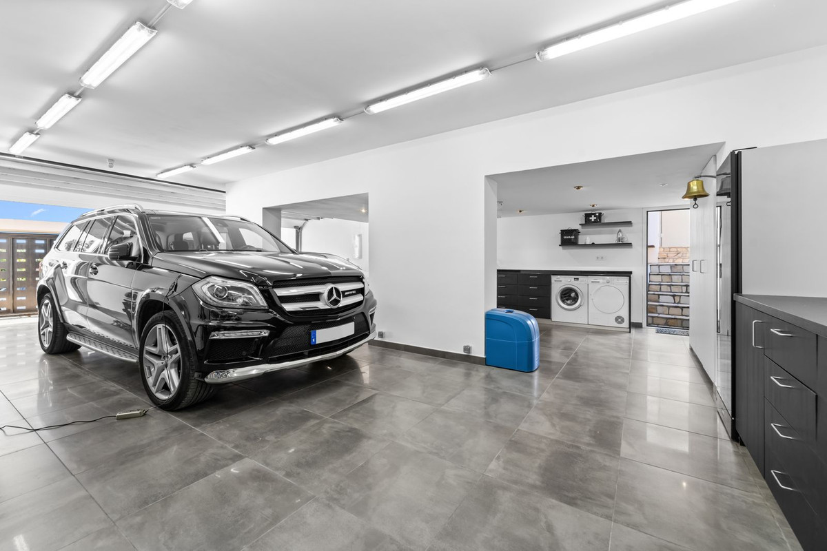 The lower level houses a bright, generously sized garage for up to four vehicles, also serving as a utility area with washing machine and dryer. Thoughtfully engineered, the space remains dry and protected even during heavy rainfall.