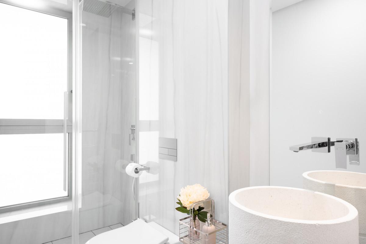 This elegant apartment offers a generous layout with three bedrooms and three bathrooms, all finished with top-quality materials. Its modern design is enhanced by cutting-edge smart home technology, including underfloor heating, air conditioning, high-speed Wi-Fi, and a smart TV. Additionally, it includes two private parking spaces, ensuring convenience and security.
