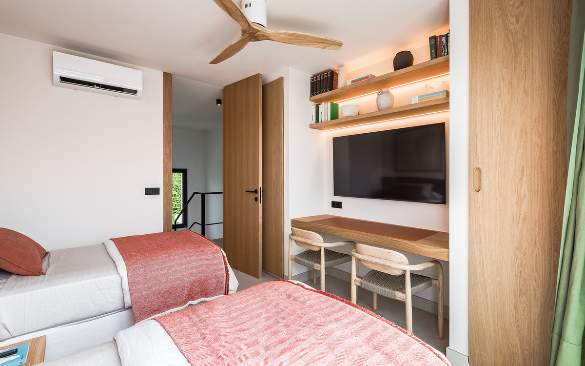 The villa offers six double bedrooms, five bathrooms, four of them en-suite, and 2 guest toilets; three of the bedrooms enjoy direct access to a terrace with mountain and natural surroundings views. There is parking space for 2 cars and EV charging station.