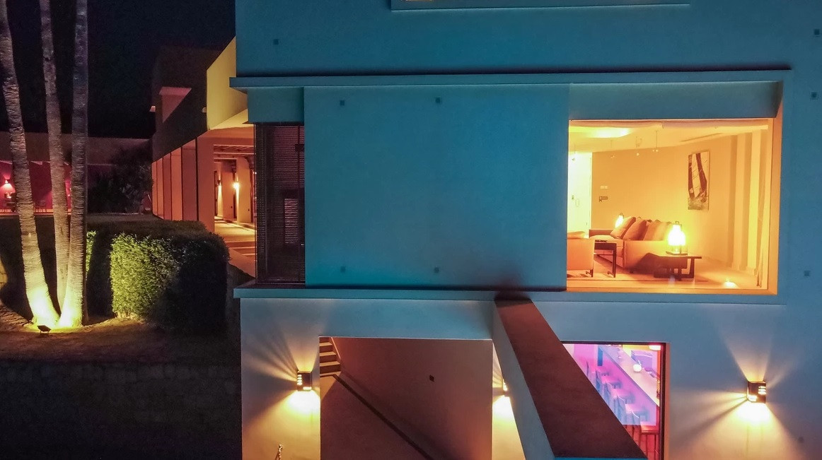 This one-of-a-kind villa is located in Sotogrande, in the South of Spain, close to Marbella, Malaga and Gibraltar. It is set in a gated residential complex at the end of a cul-de-sac and at the entrance of the world renown Club Reserva de Sotogrande Golf Course. A five-minute drive will bring you to the beach of the Mediterranean Sea and all of its entertainment. Stores, shopping malls and supermarkets are close by. The Málaga International Airport is over an hour's drive away.