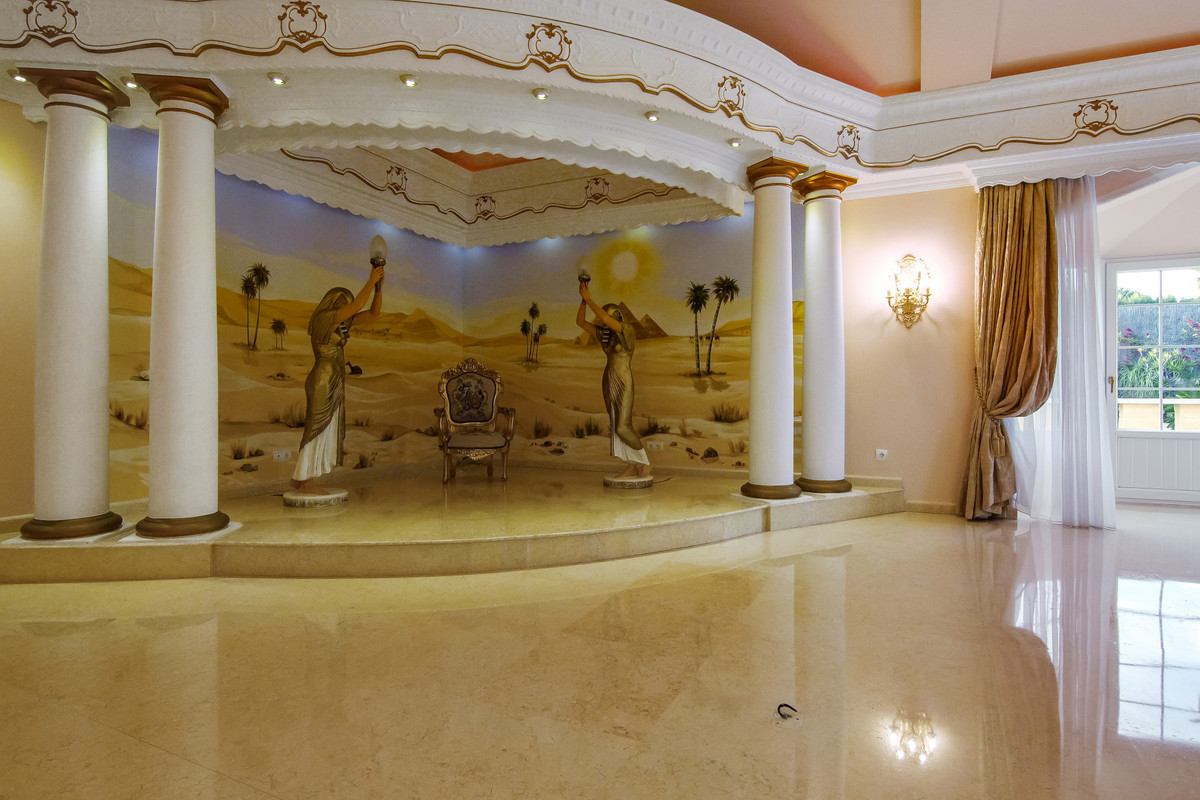 Unique villa in Sotogrande Alto, offering panoramic views towards the sea, Gibraltar, Africa and mountains. Situated only a few minutes drive from Sotogrande Port, the prestigious Valderrama golf course and other amenities. The main features include a fabulous private garden with swimming pool, air conditioning hot/ cold, marble floors, fully fitted kitchen, games room, cinema room, opera room ¨phantom of the opera¨, garage for 20 cars, and so much more!!!