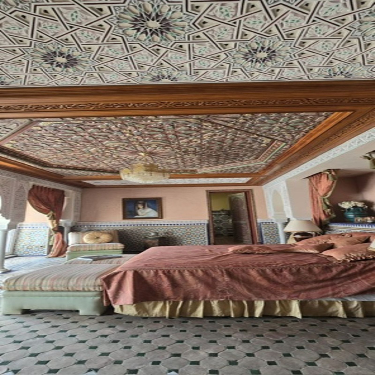 Everything in this mansion is made with the finest materials. The bedrooms all have huge built-in wardrobes, all with en-suite bathrooms, and the house has an indoor pool and sauna, a security room, etc.