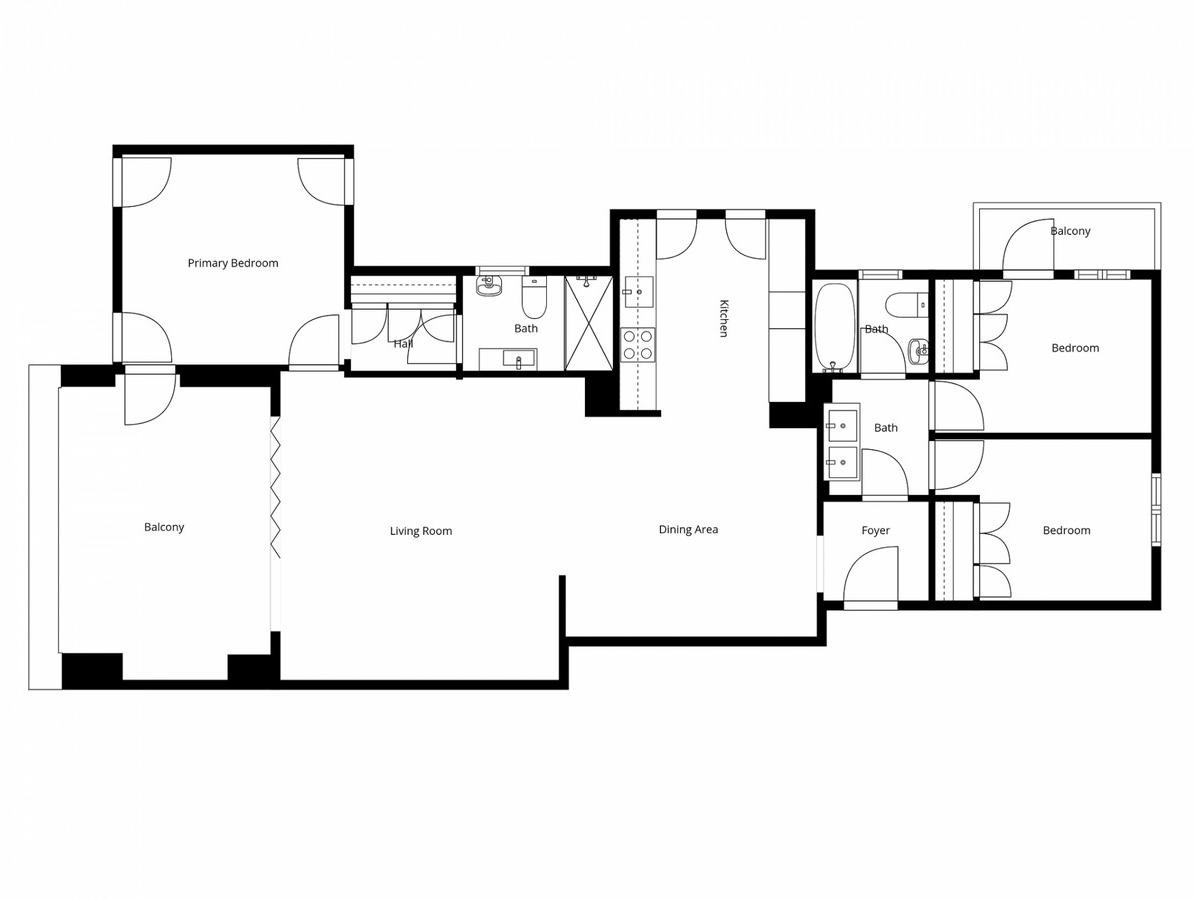 La chambre principale, spacieuse, bénéficie d'un accès direct à la terrasse et d'une élégante salle de bains privative. Deux autres chambres se partagent une salle de bains moderne, ce qui rend cet appartement idéal pour les familles ou pour recevoir des invités.